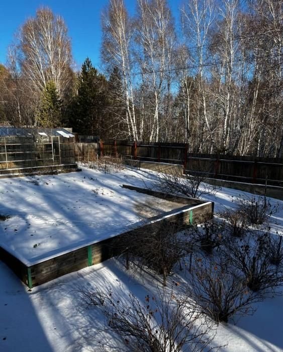 На участке теплица, плодово-ягодные кустарники: малина, жимолость, слива, смородина, крыжовник, вишня, ирга, рябина, клубника, яблони. Огород хорошо удобрен, дает отличный урожай.