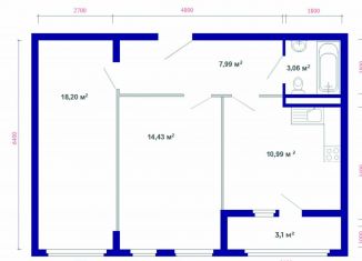 Продажа 2-комнатной квартиры, 59.9 м2