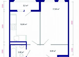 Однокомнатная квартира на продажу, 44.2 м2