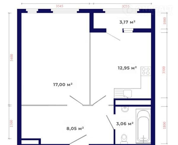 Общая площадь 44.2 м2