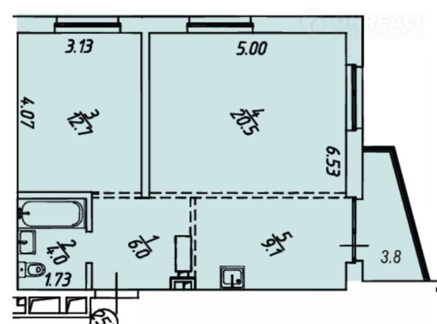 Общая площадь 56 м2