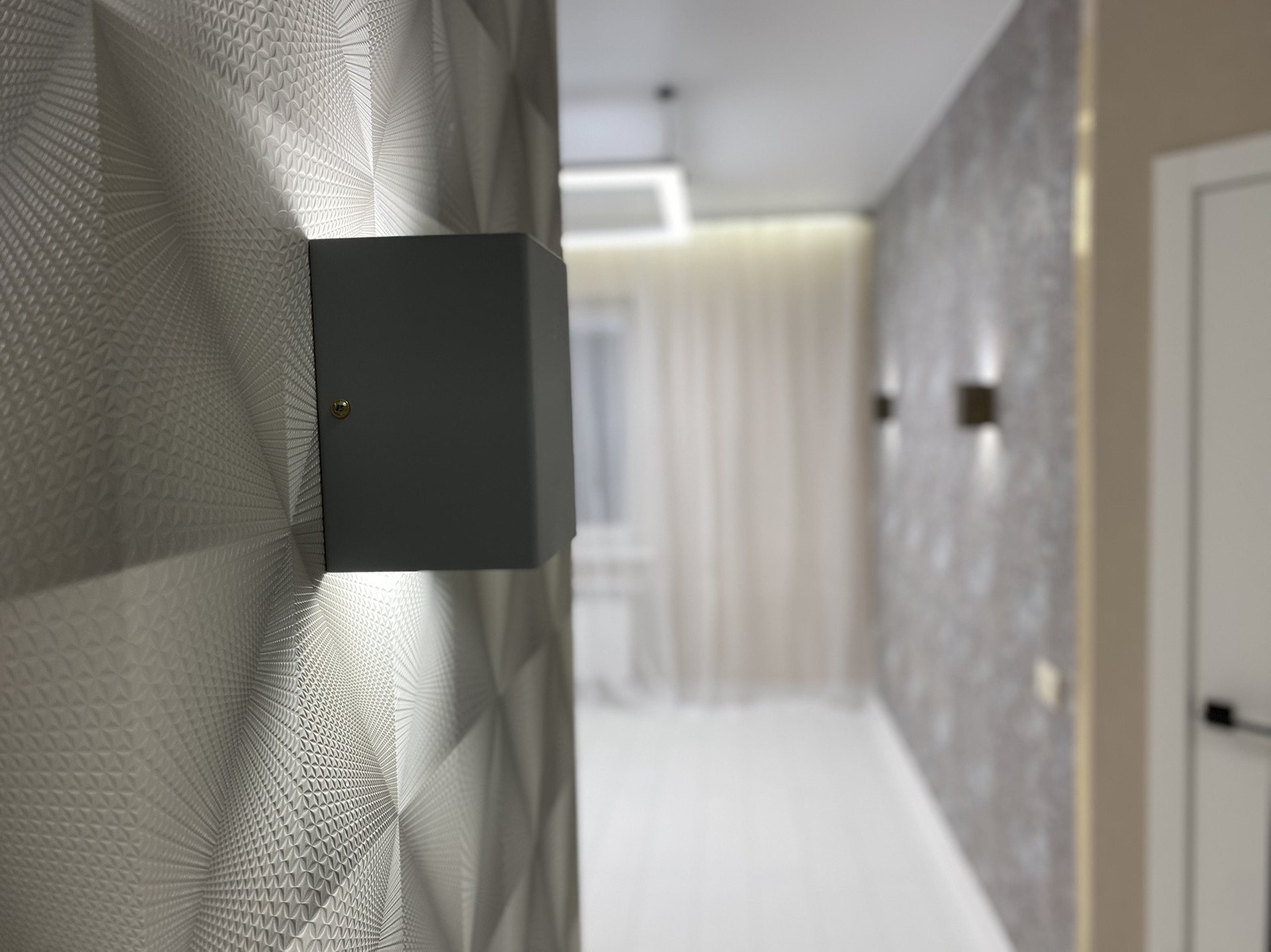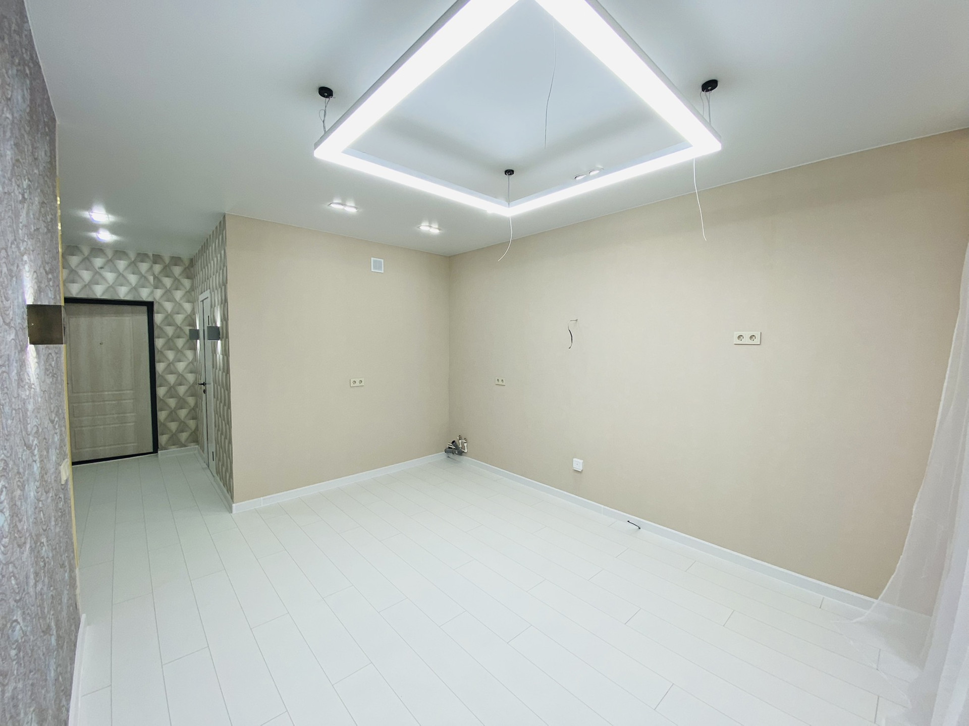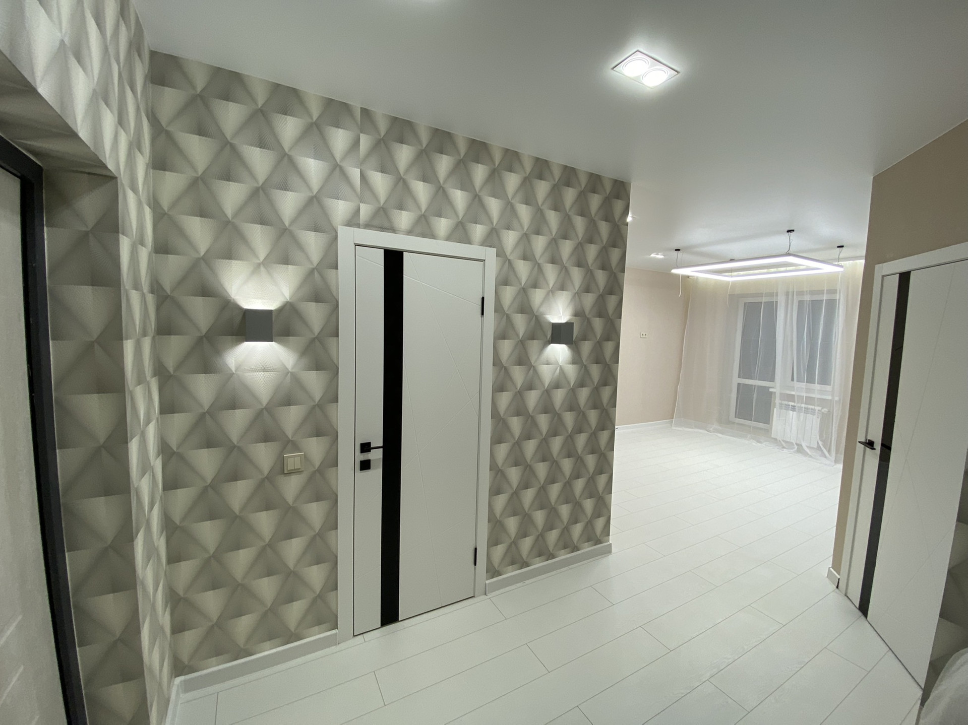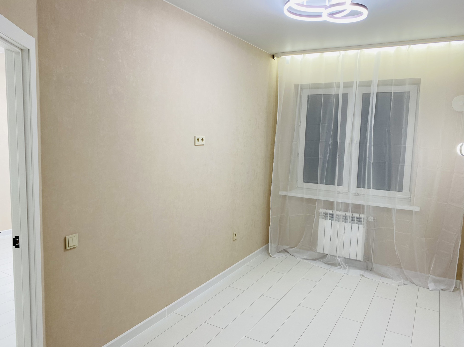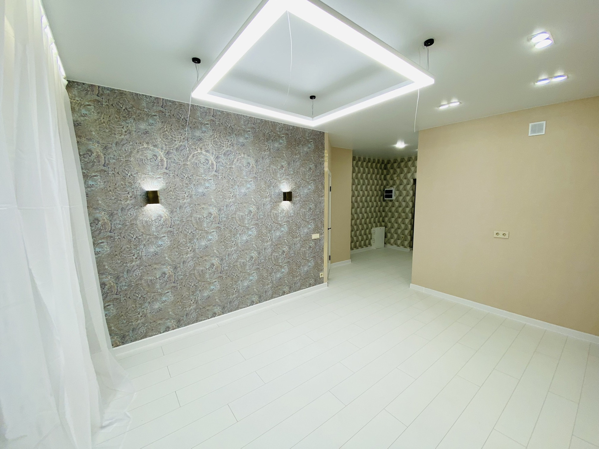 Сделан качественный , ремонт! Led подсветки в спальни , гостиной , карнизах. Прикроватные светильники, led люстра с различными режимами !