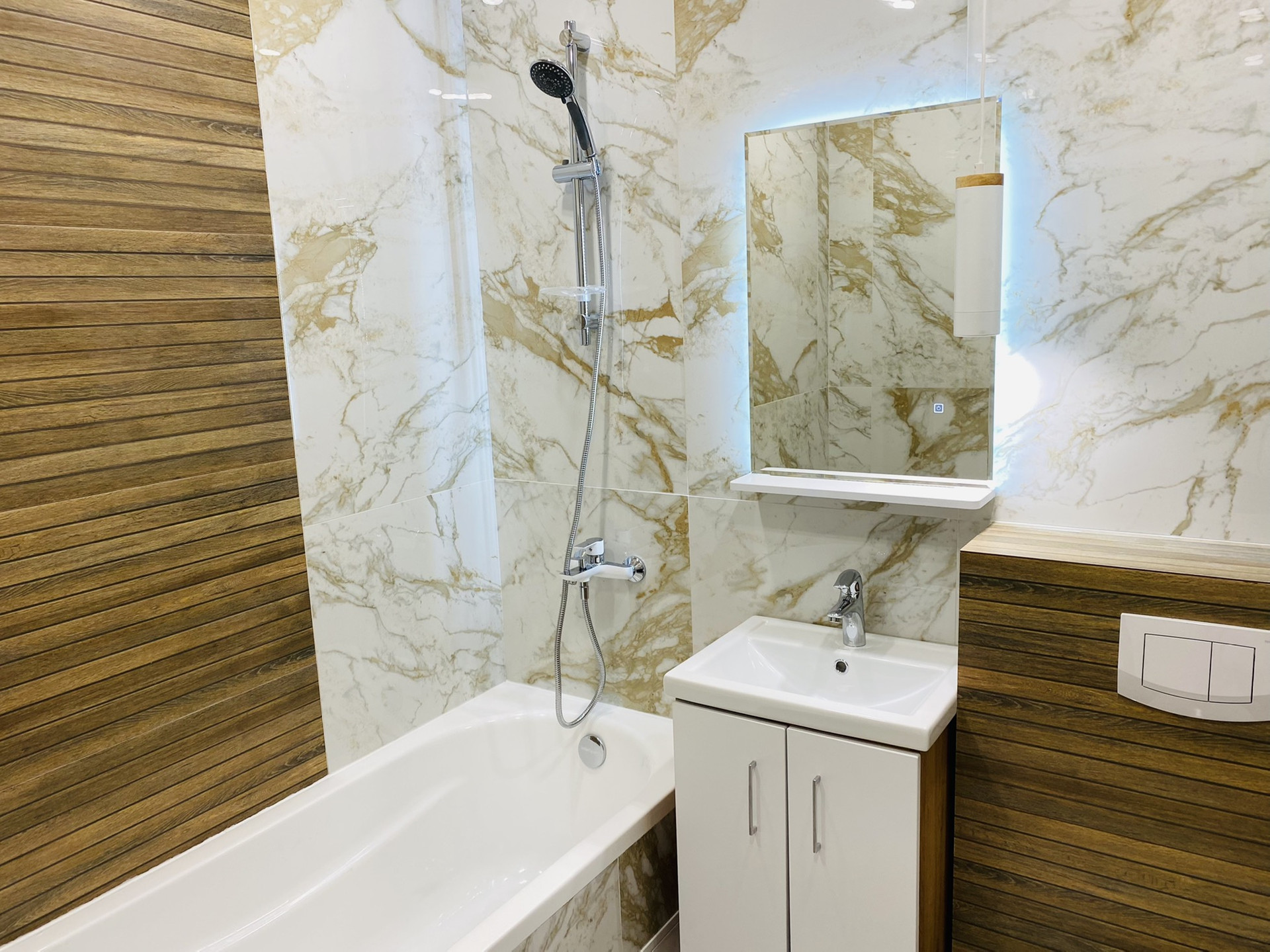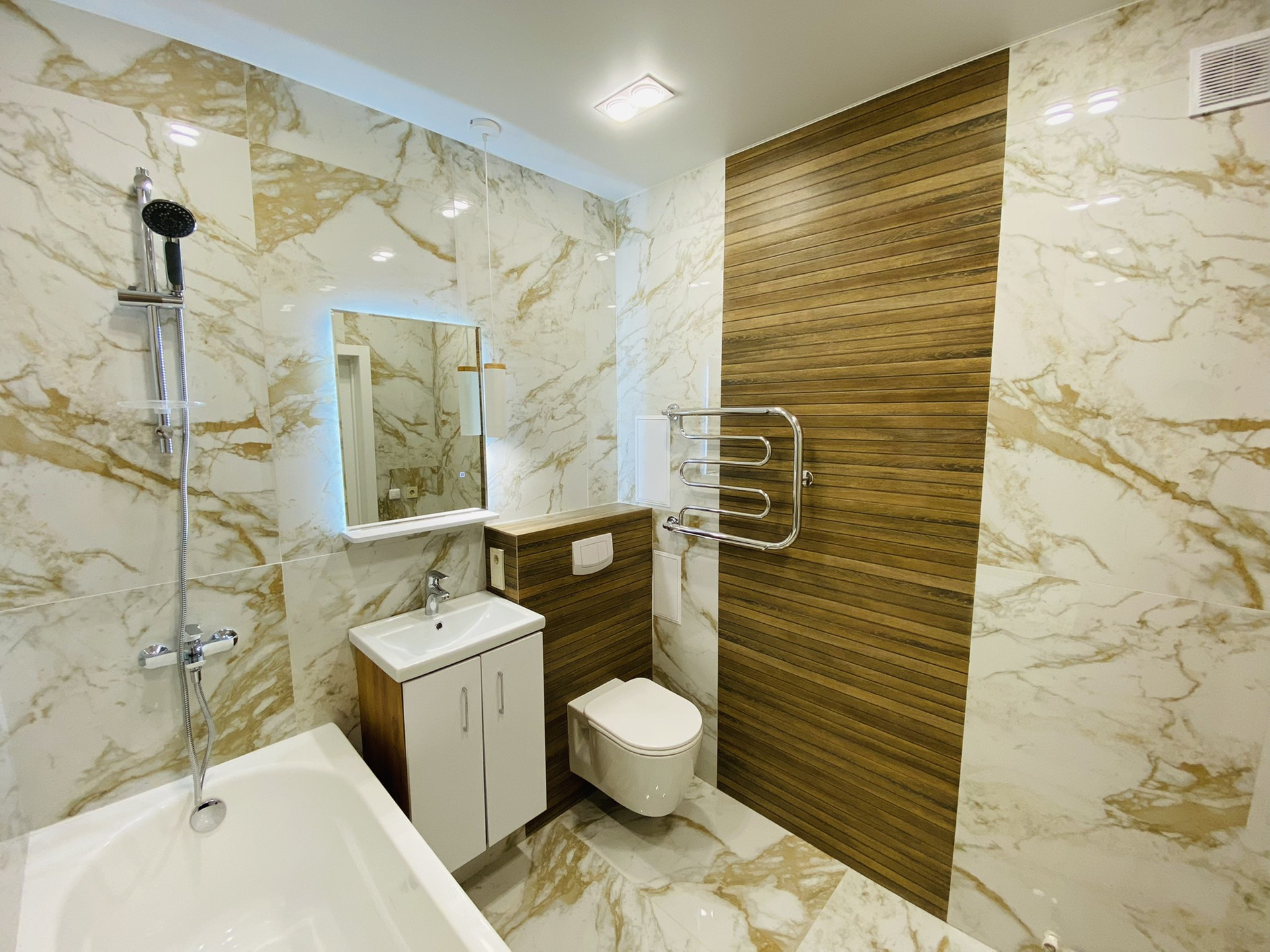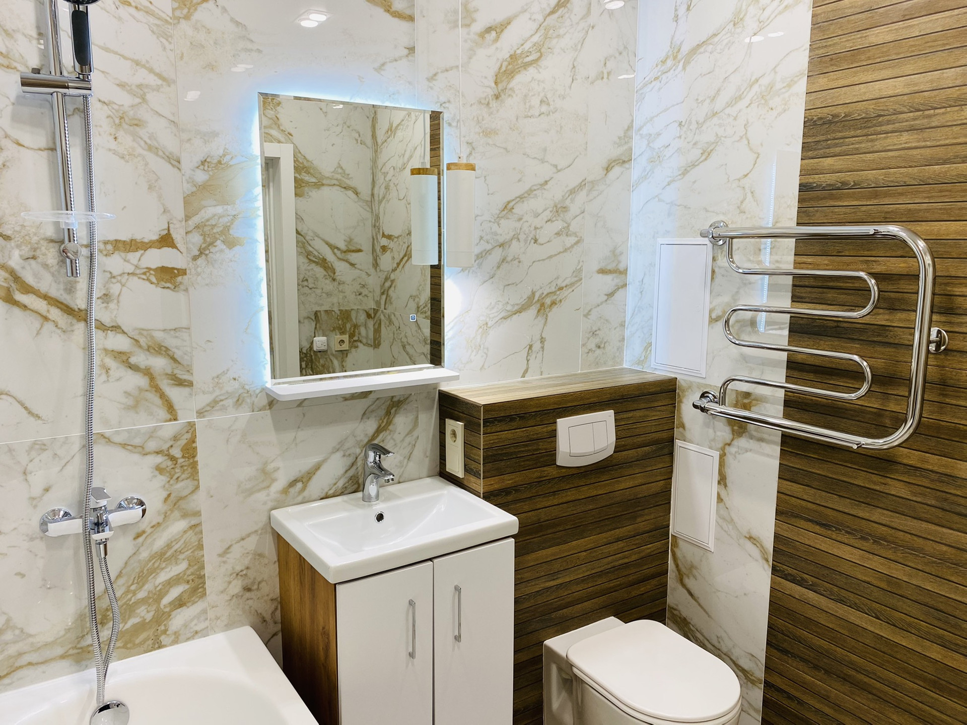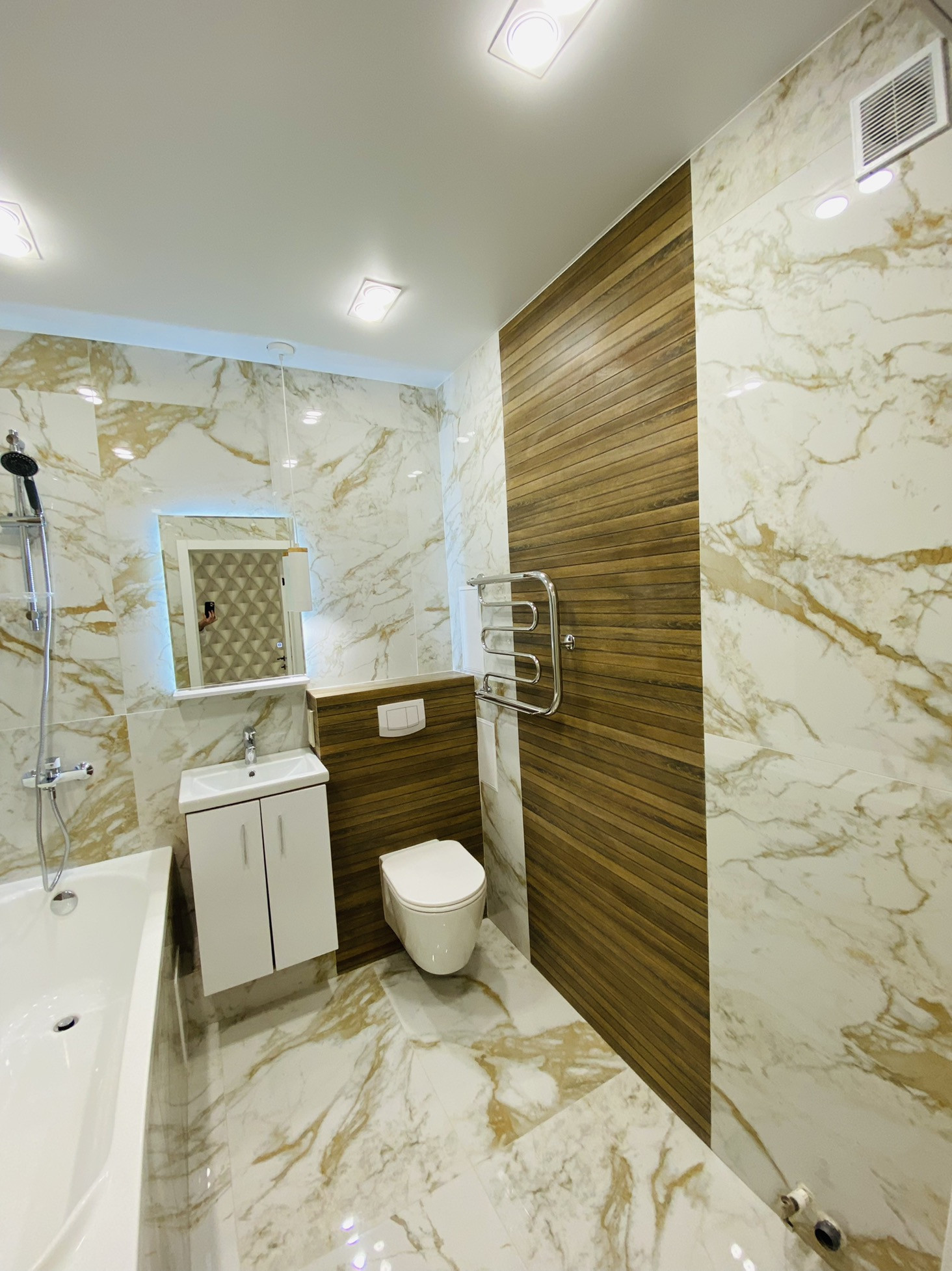 Использовалась хорошая плитка,обои,освещение и остальные материалы !