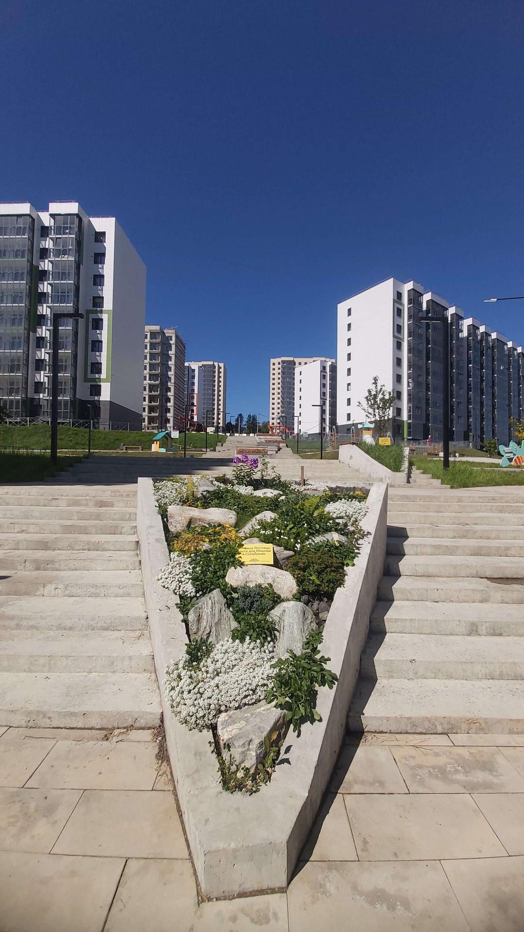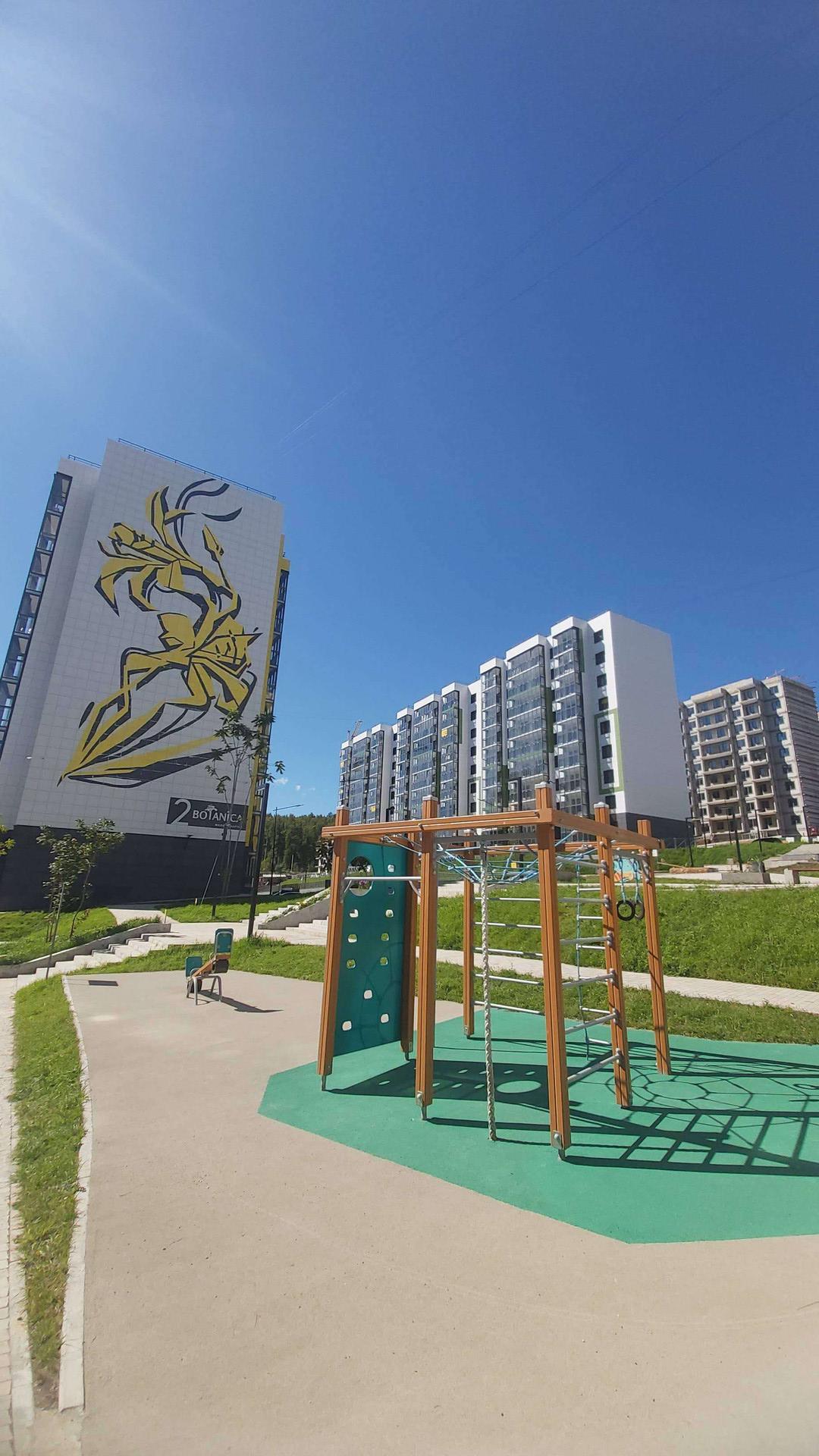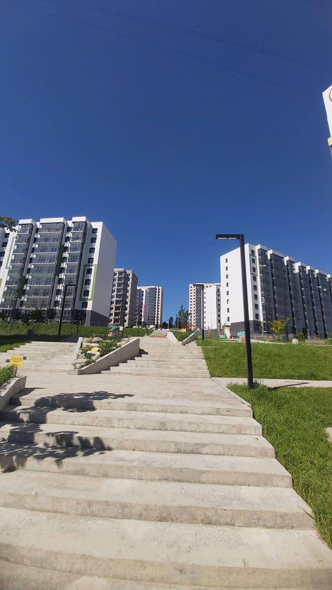 Рядом несколько автобусных остановок, супермаркет Удача. Экологически чистый район. Отличное, атмосферное место для семей с детьми, так как много прогулочным зон, игровых и спортивных площадок, клумб с цветами, зон отдыха, красивых локаций. Район развивается, в дальнейшем планируется   строительство собственных детского сада и школы.