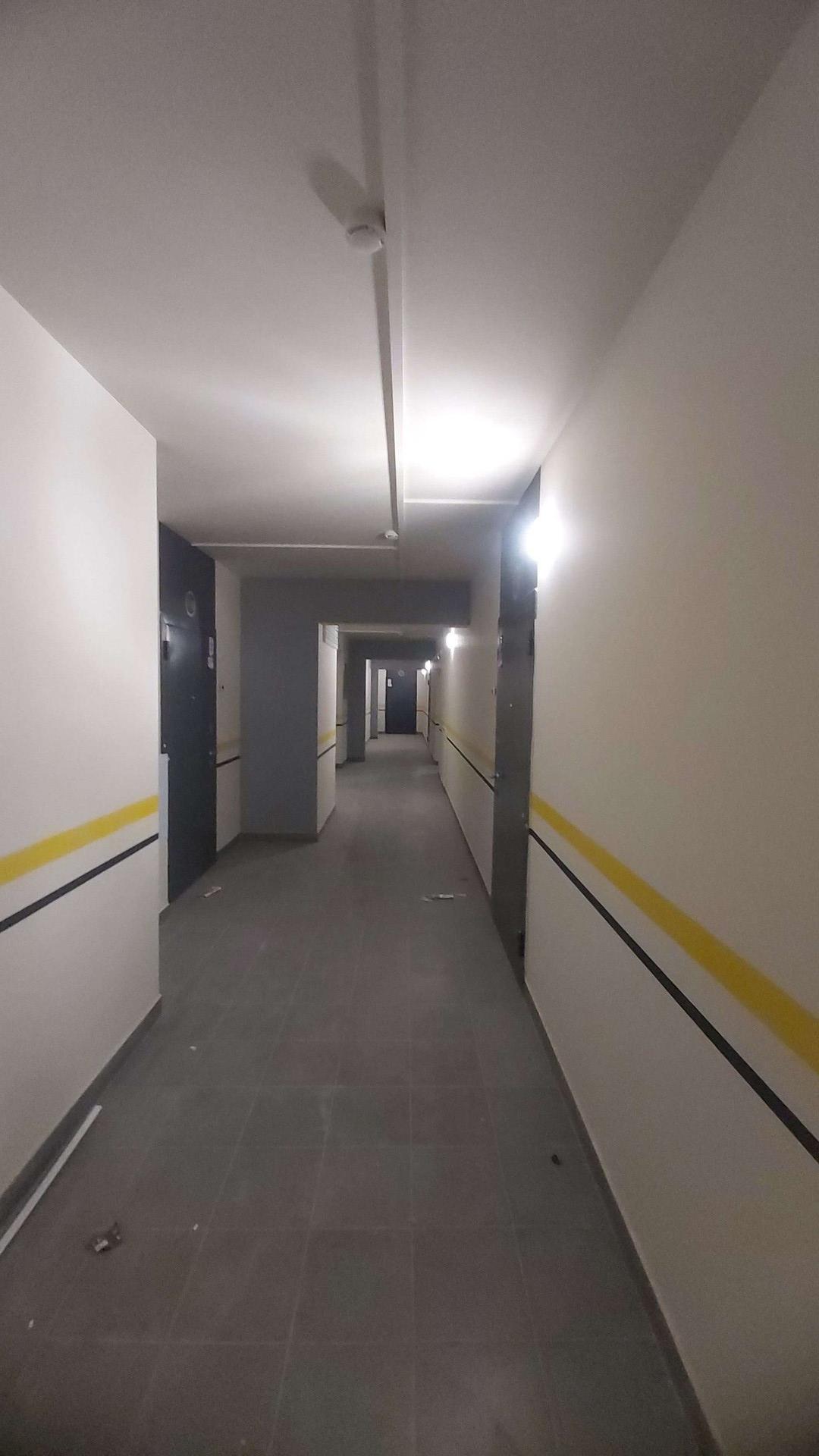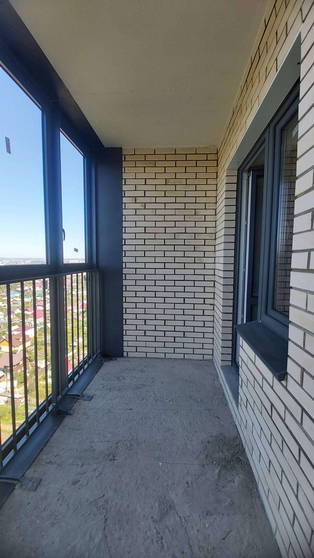Квартира не угловая. Панорамный балкон, просторный коридор, где можно разместить гардеробную, совмещённый санузел.