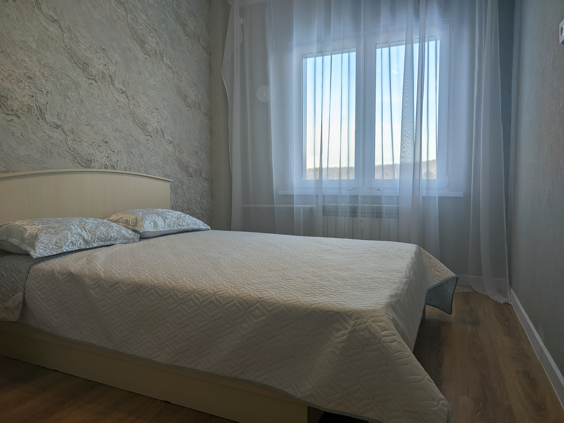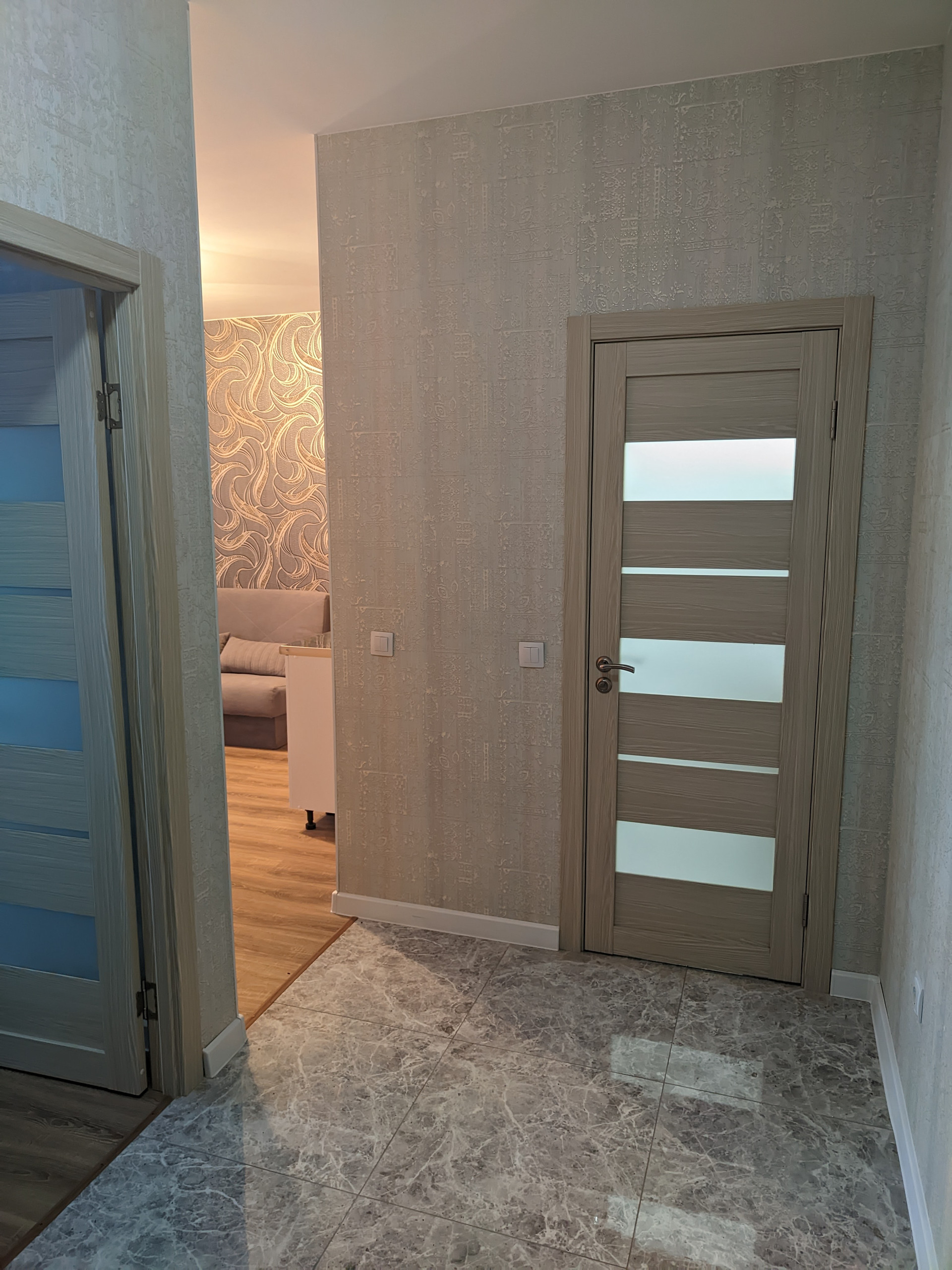 Евро-двухкомнатная квартира, просторная гостиная и отдельная спальня.