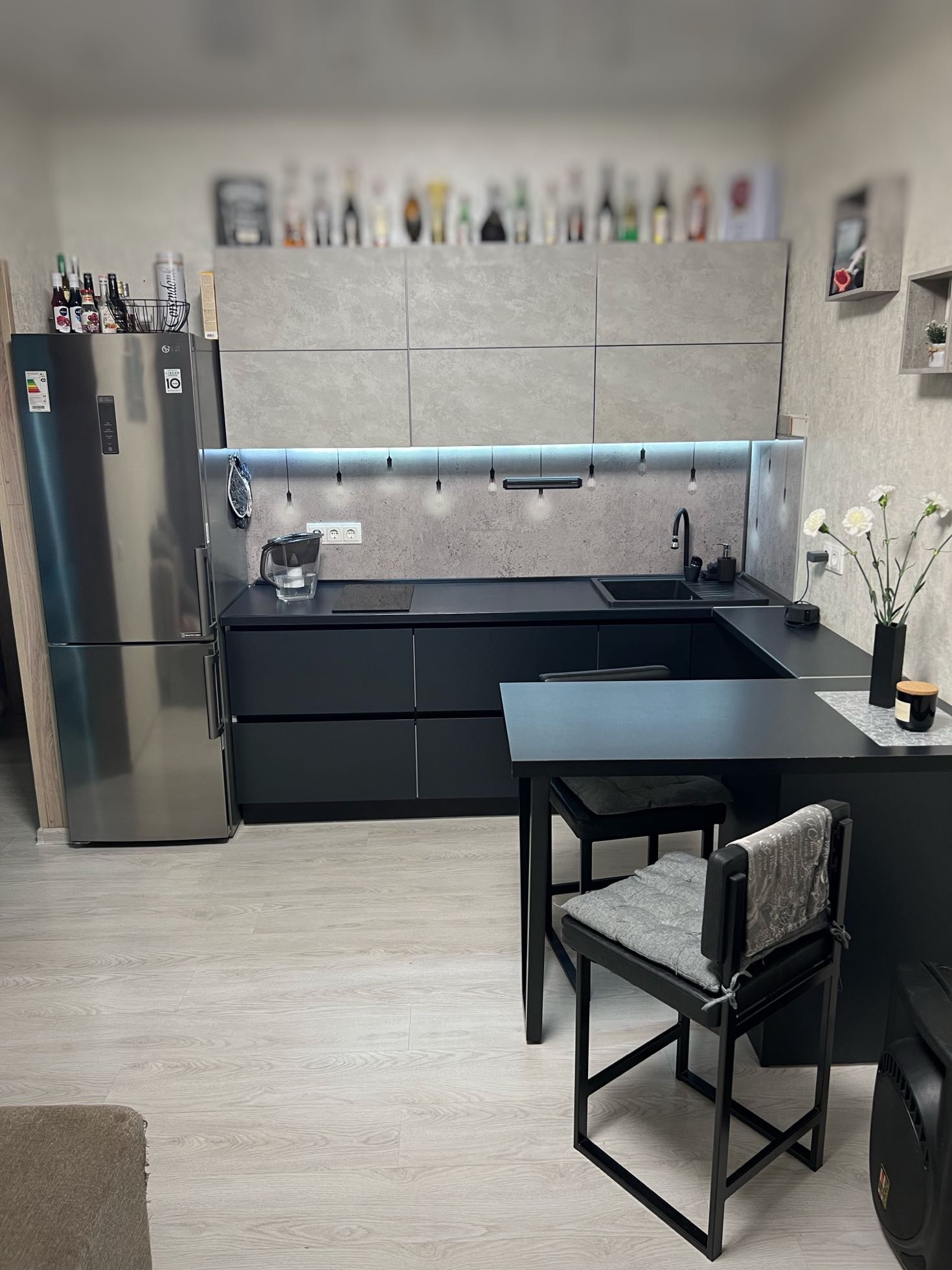 будущим жильцам можем оставить стильную встроенную кухню с фурнитурой Blum и варкой.