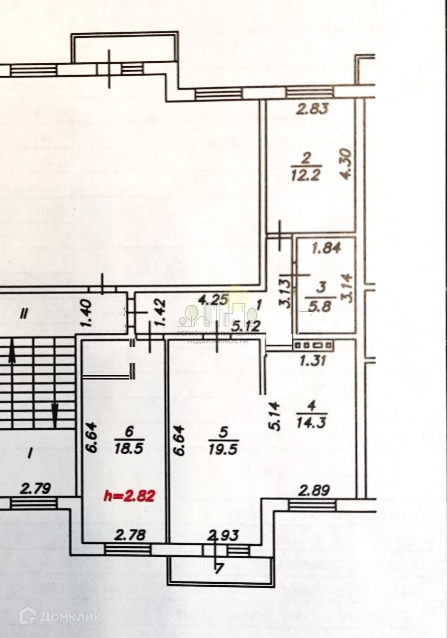 Высота потолков 2.82 м