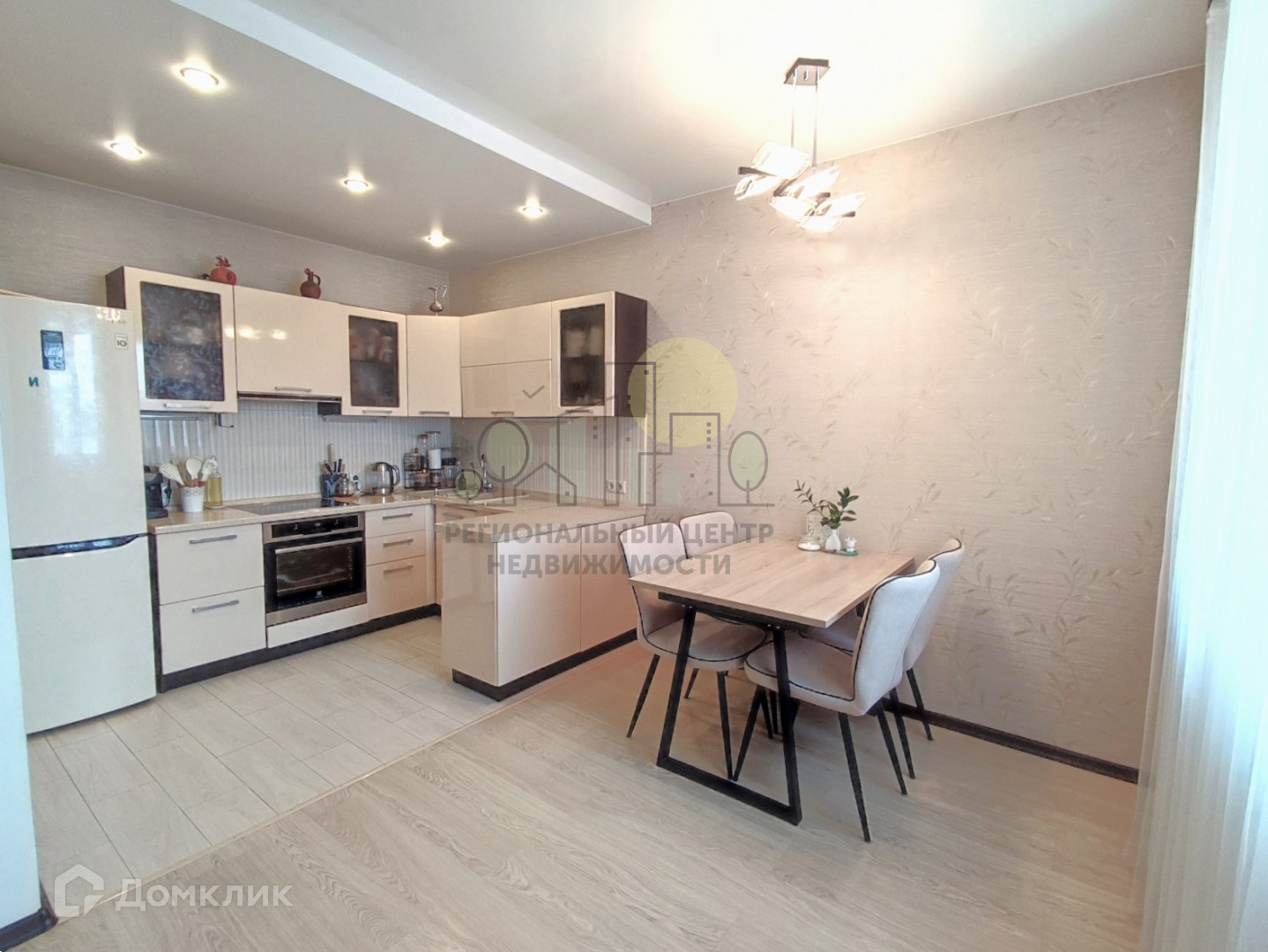 В квартире остается кухонный гарнитур со встроенной бытовой техникой, кондиционер.