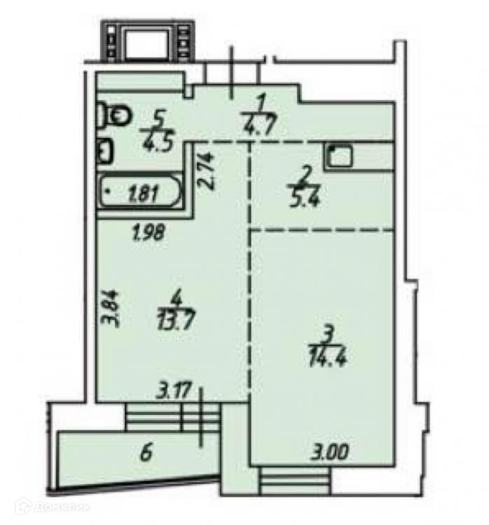 Площадь кухни 5.4 м2