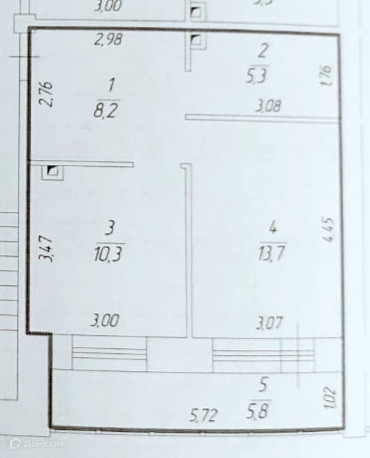 ОБЩАЯ площадь квартиры 37,5 кв. м + Лоджия 5.8 кв.м. на ДВА окна!