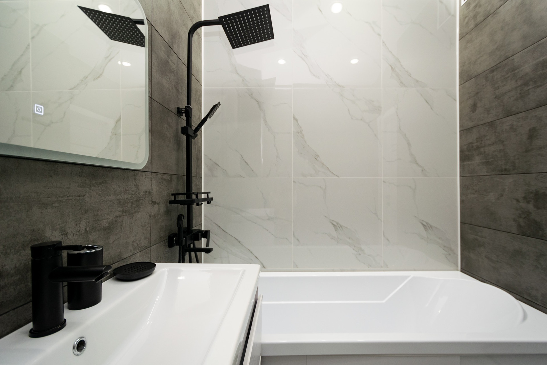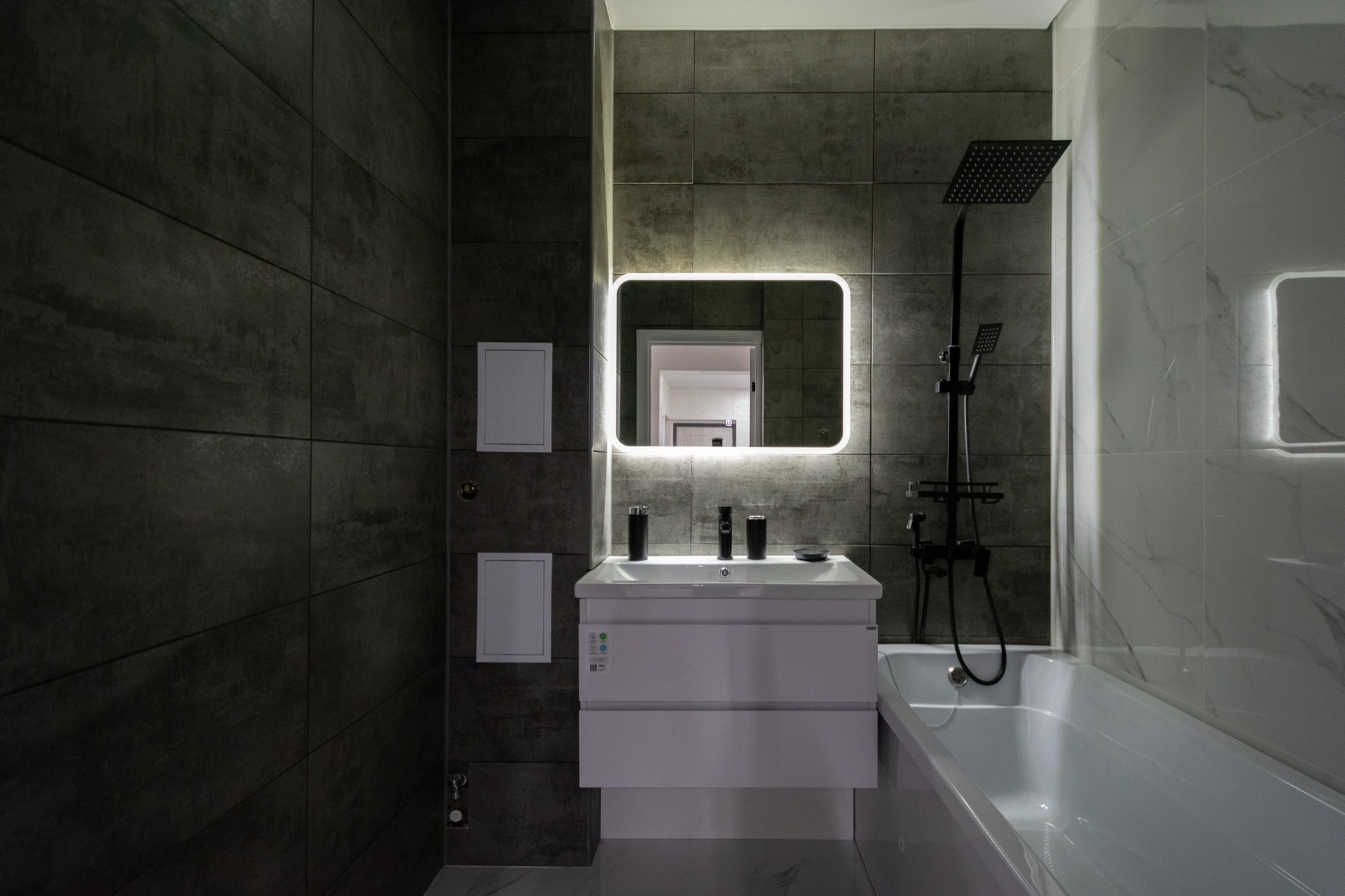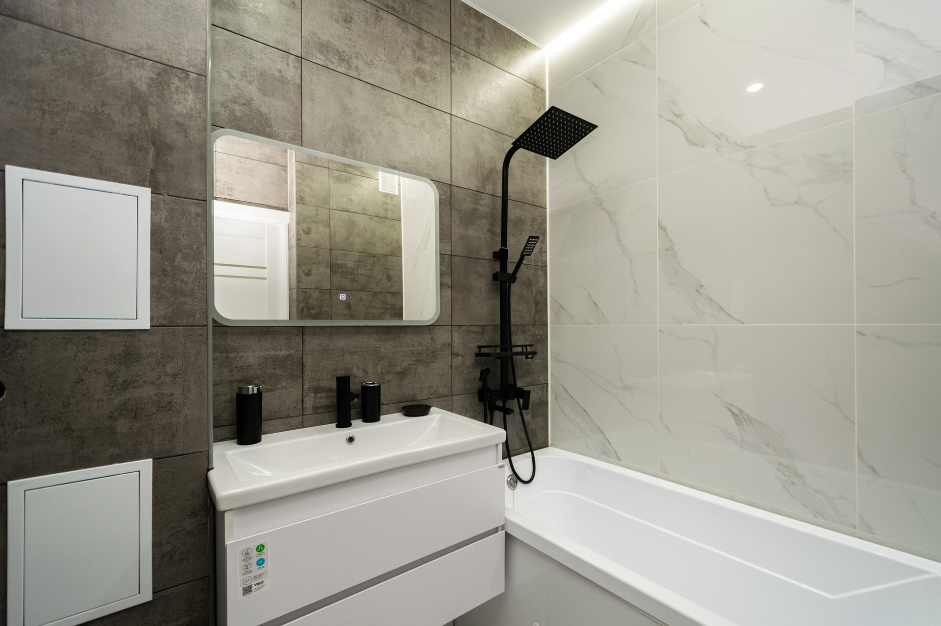 Дизайнерский ремонт также касается ванной комнаты.В отделке использовали  материалы только премиум класса и стильные элементы декора, чтобы создать максимально комфортную обстановку.