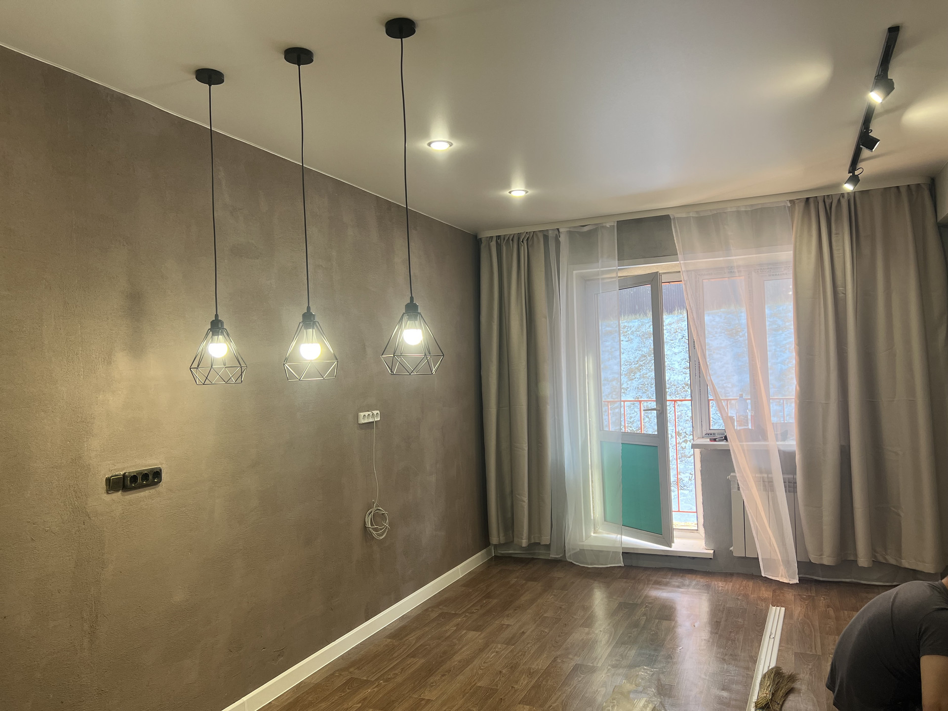 Хороший ремонт, зонированное освещение (светильники над кухонным столом и кухонный свет включается отдельно от основного).