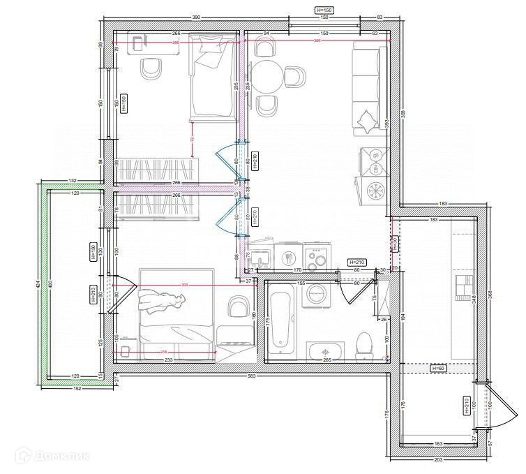 Общая площадь 52 м2