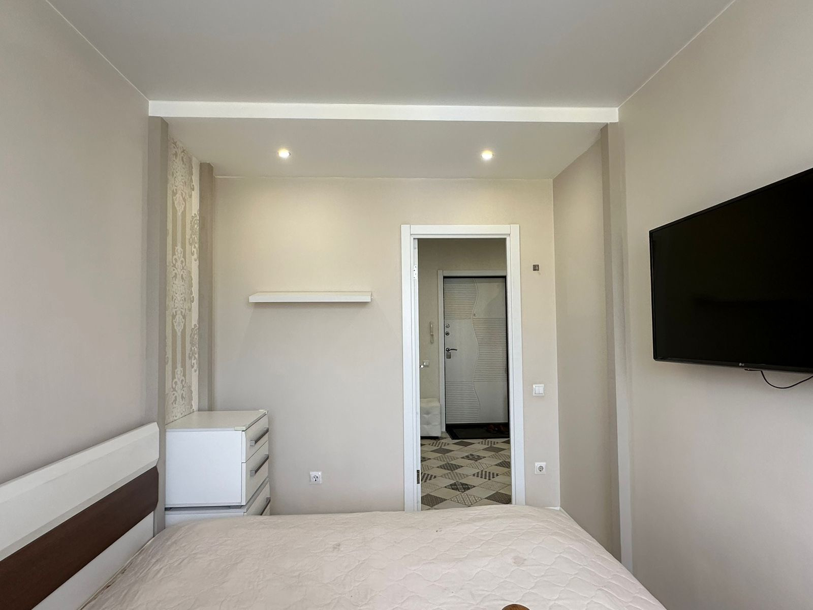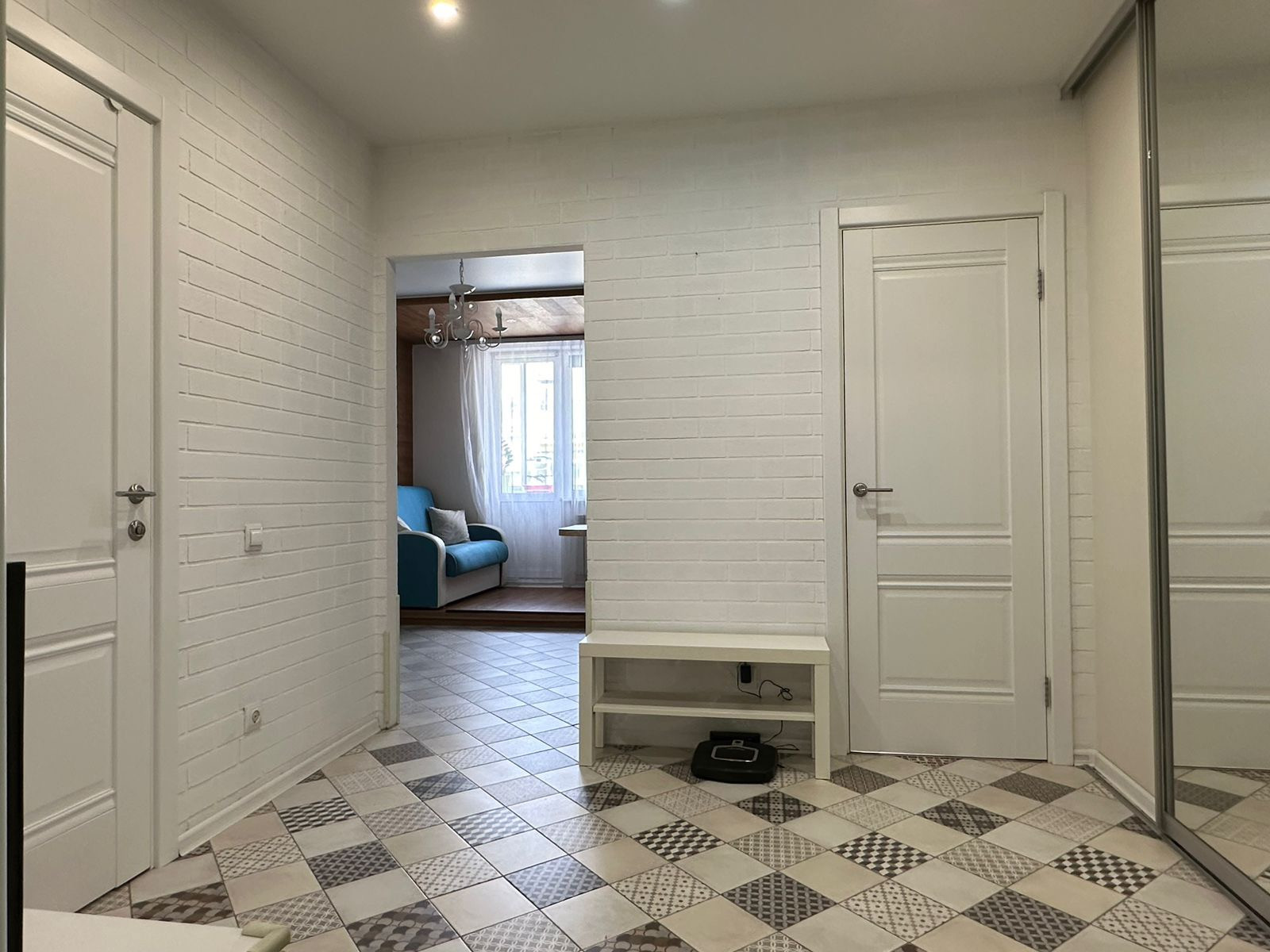 Полы: керамогранит, ламинат. С/у -кафель, инсталляция. Натяжные потолки. Хорошая входная и межкомнатные двери.