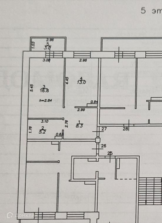 Высота потолков 2.84 м