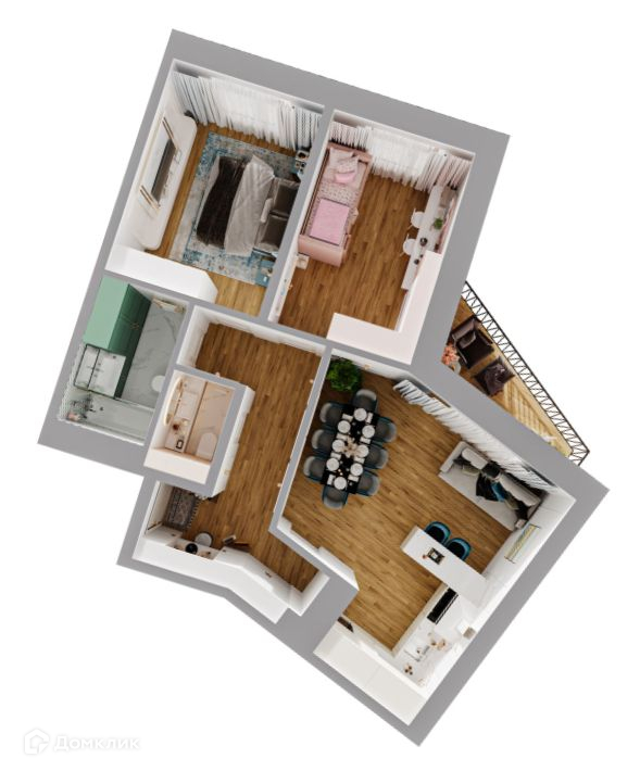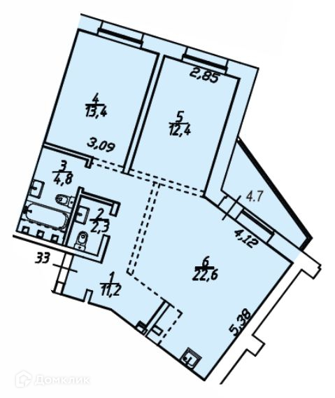 Просторная евротрёшка с окнами на западную сторону для семейной пары с детьми полностью соответствует современным представлениям о комфорте. В такой квартире можно воплотить в жизнь и просторную гардеробную комнату, и мастер-спальню, и гостевой санузел. Из гостиной есть выход на открытый балкон с видом во двор на детскую площадку.
