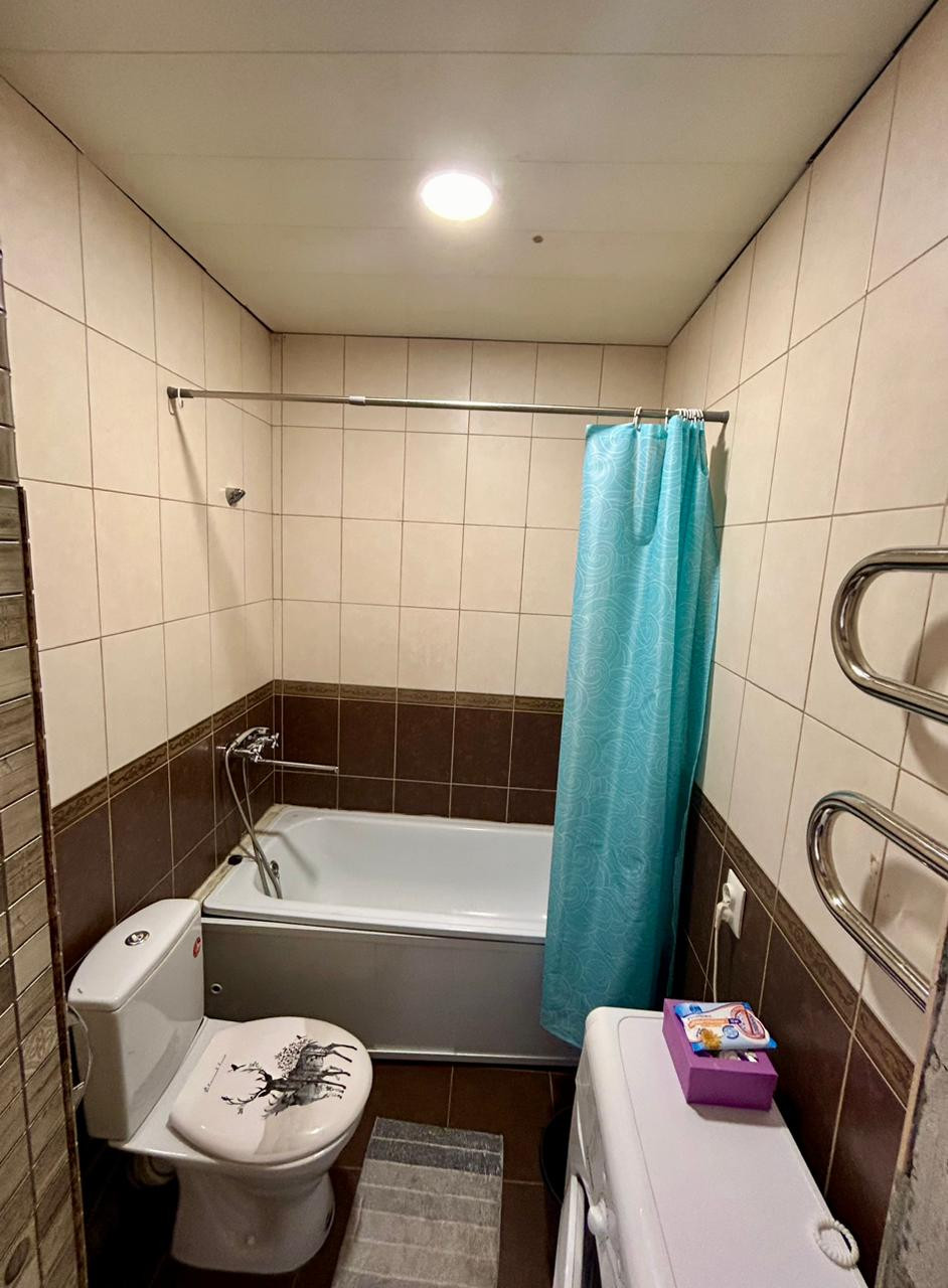 Санузел совмещённый, выполнен в кафеле, что обеспечивает лёгкость ухода.