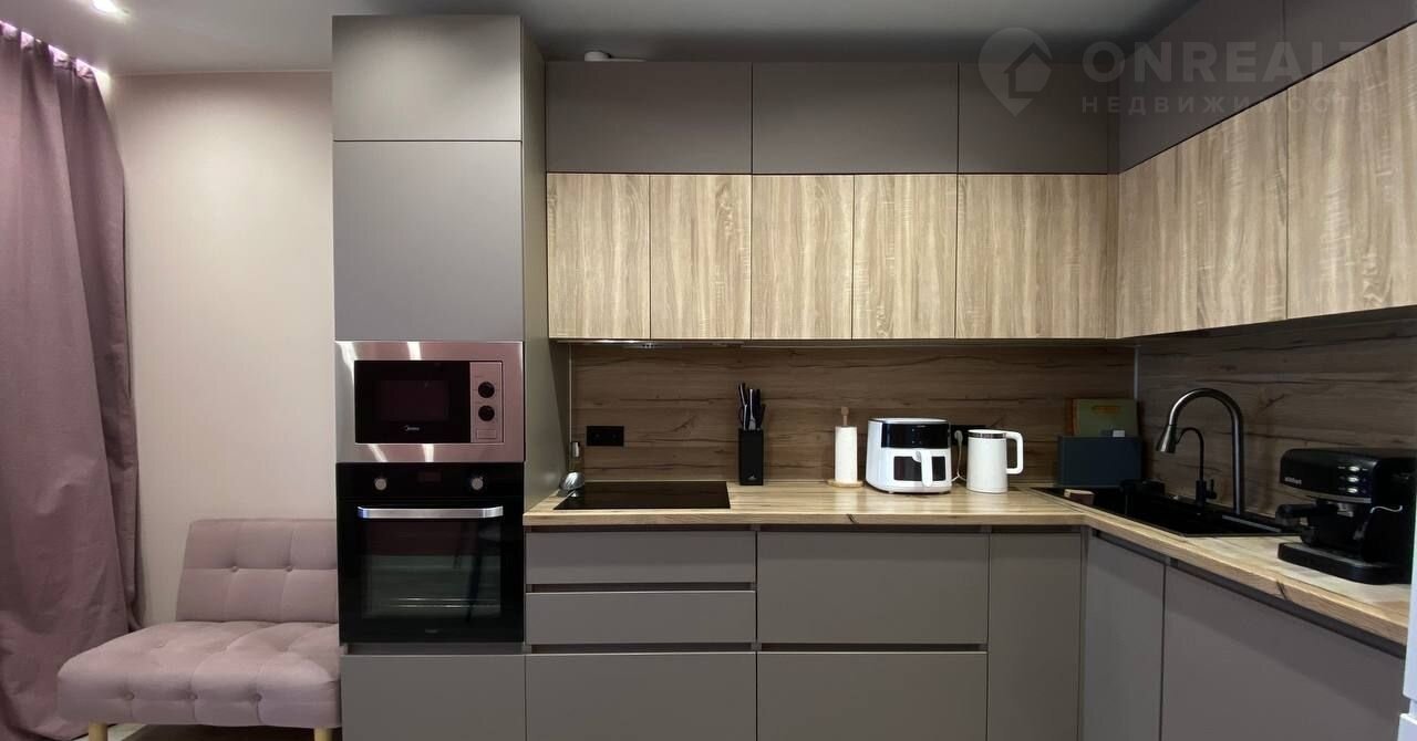 кухня студия с выхoдом на бaлкон