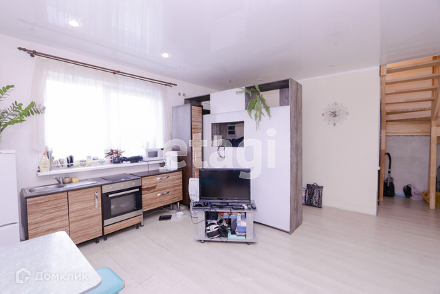 На первом этаже расположена кухня-студия и санузел.
