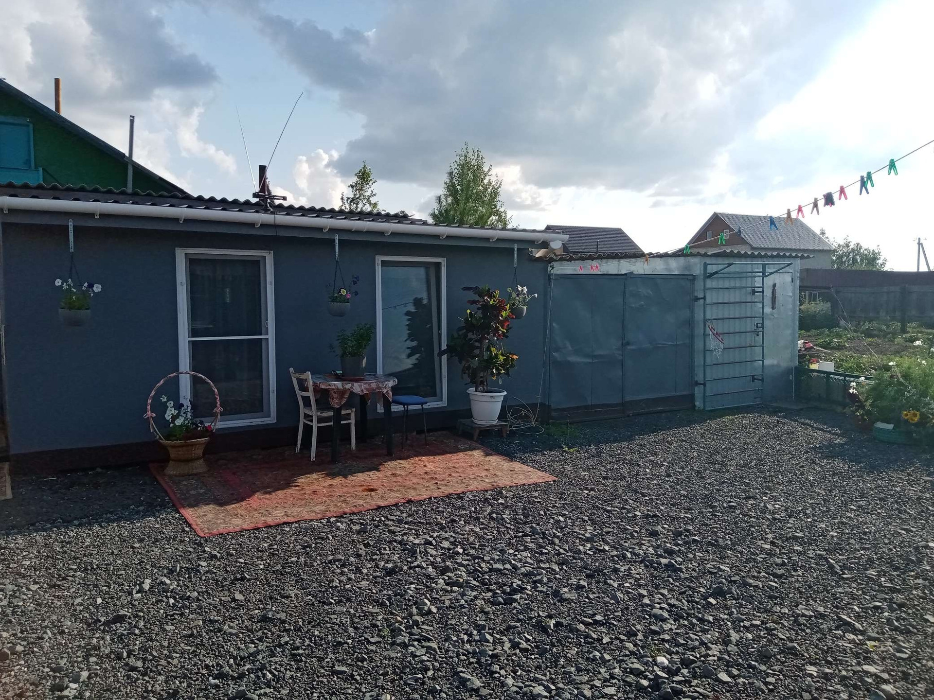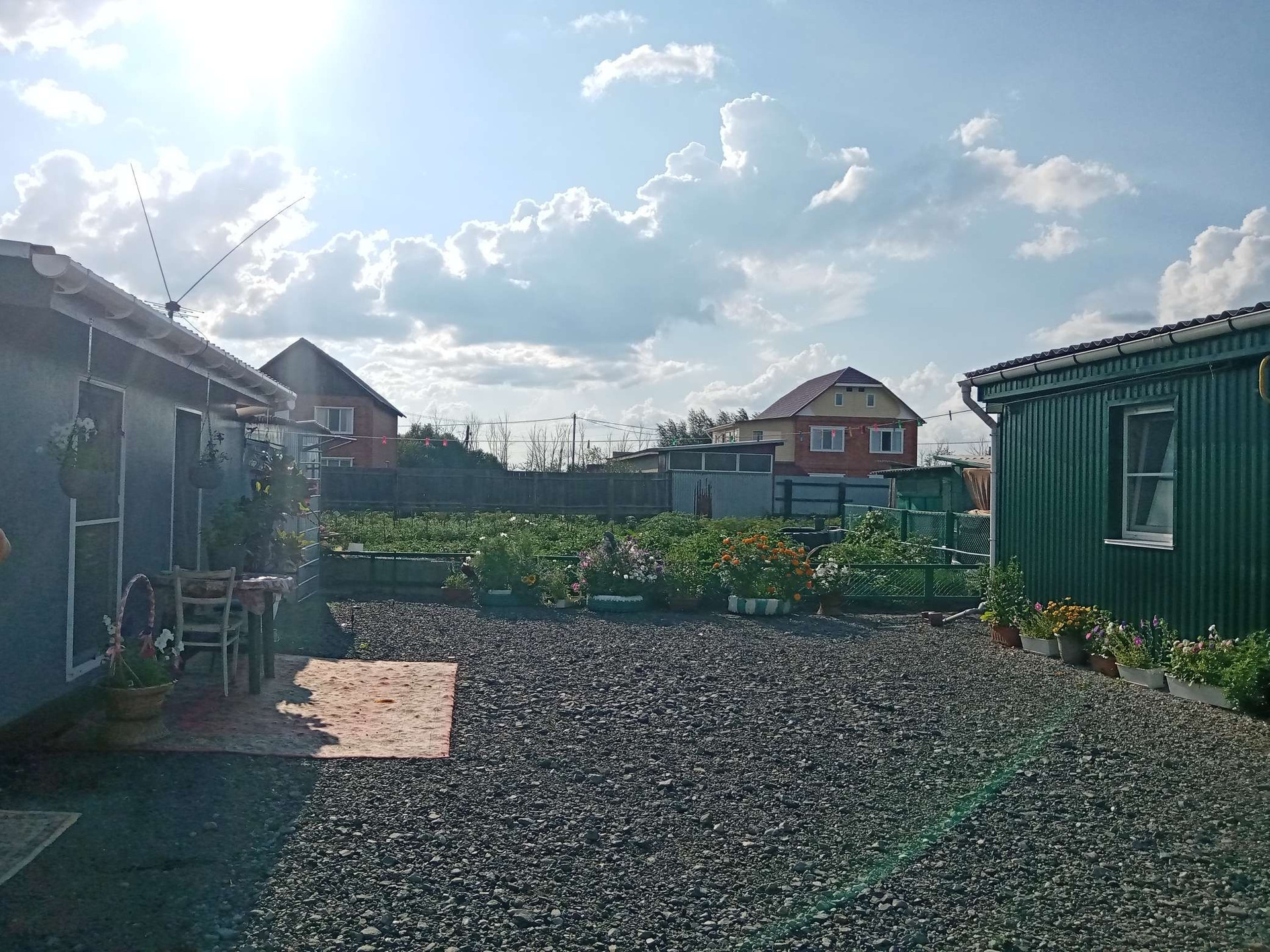 Огород ухоженный, садим каждый год, межжевание проведено. Проведён летний водопровод для полива огорода Двор большой, грязи нет - засыпан. Есть летняя кухня (