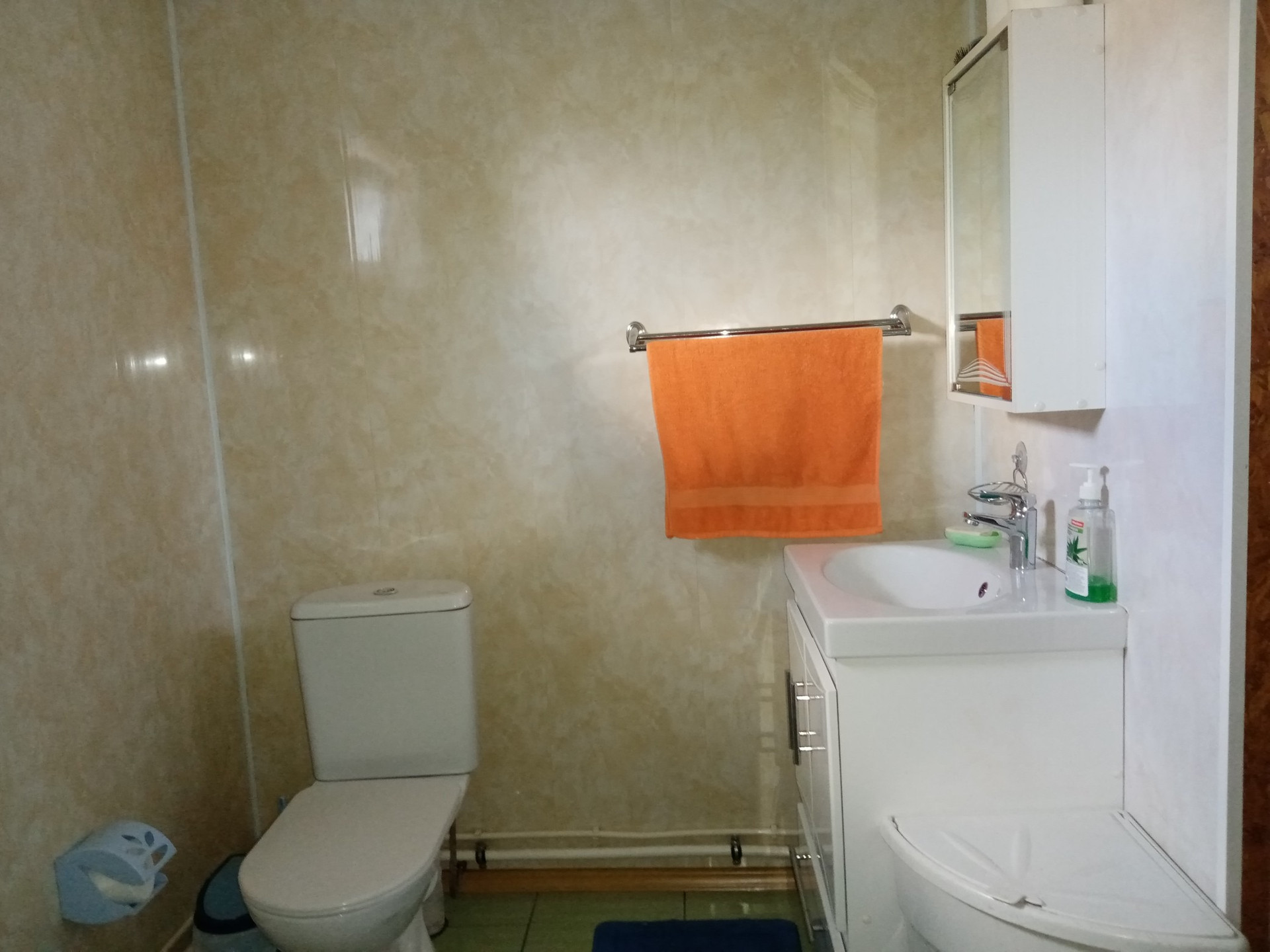 Дом благоустроенный - природный газ ( есть и твердотопливный котёл, оставляли на всякий случай), вода в доме - горячая вода от бойлера. Туалет совмещен - душевая кабина, унитаз. Выгребная яма на 3 Куба