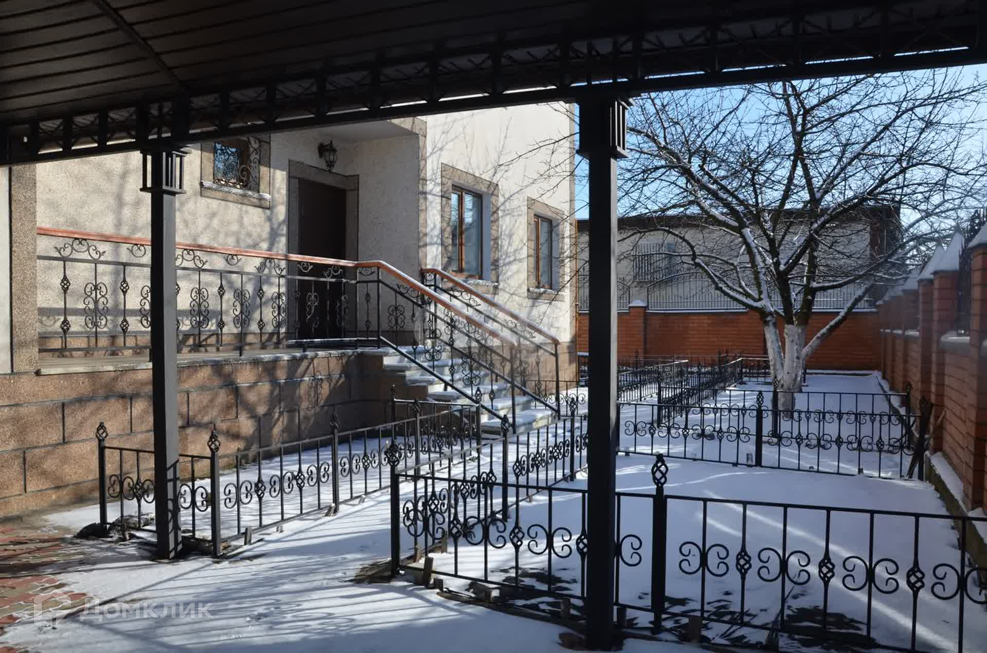 Территория огорожена кирпичным забором с кованными воротами. Двор и дорожки выложены плиткой. Газон от дорожек огражден не высоким забором. На всю ширину задней части двора обустроен теннисный корт.