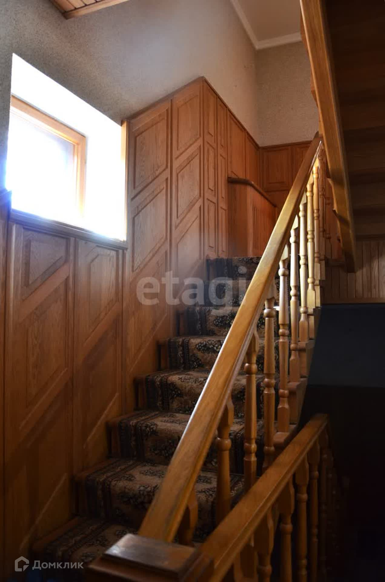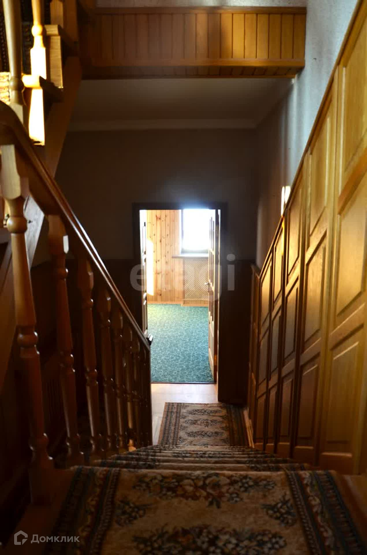 На второй этаж ведет деревянная лестница с перилами. Между первым и вторым этажом комната, которая использовалась в качестве спортивного зала, покрытие пола ковролин.
