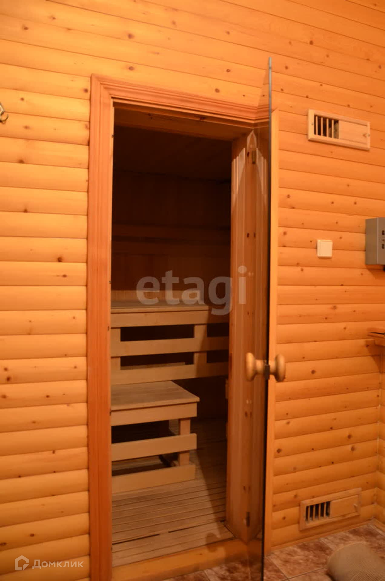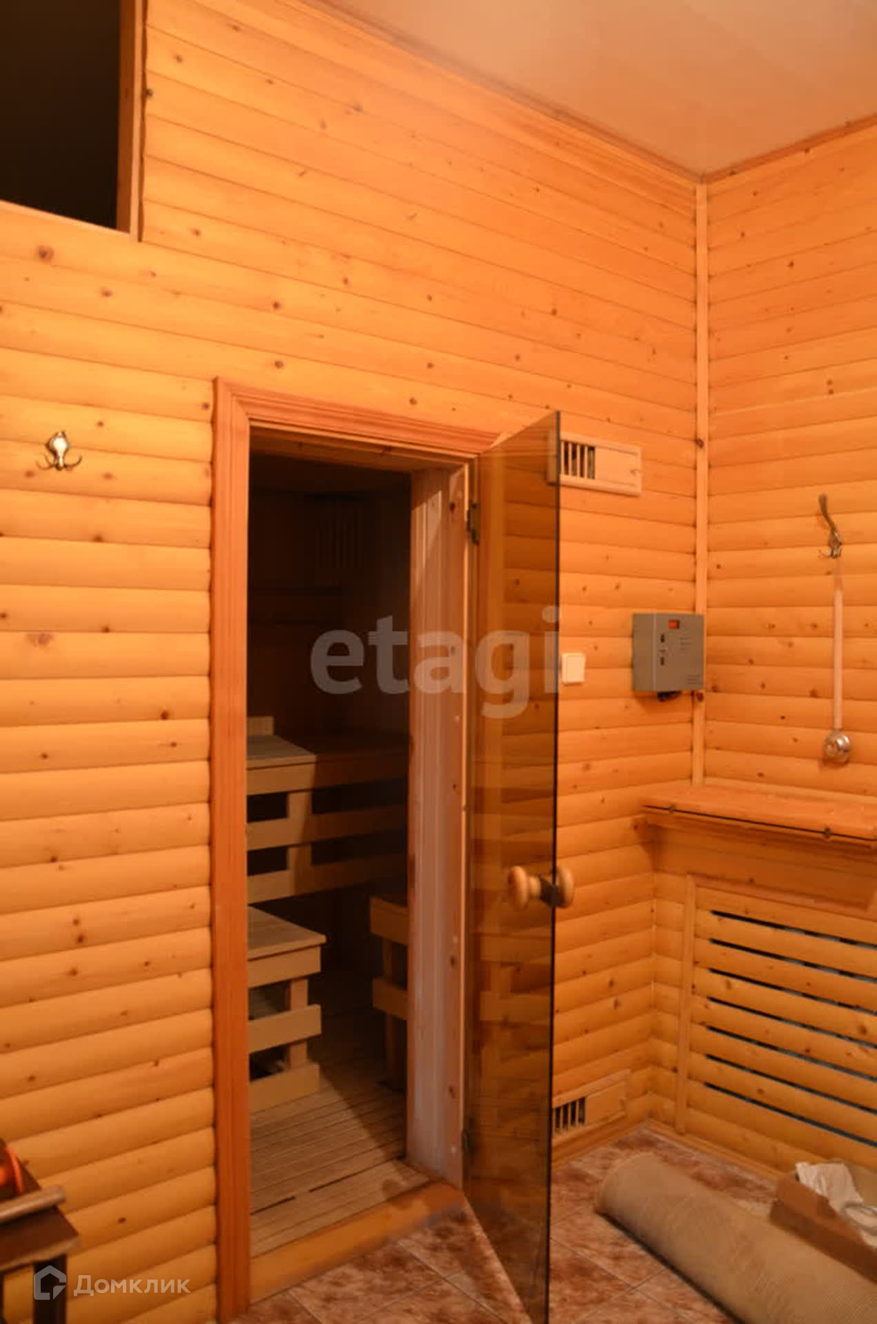 На первом этаже коридор, большая комната, просторная светлая кухня-гостиная (кухонный гарнитур остается), раздельный санузел, баня, большая кладовая.