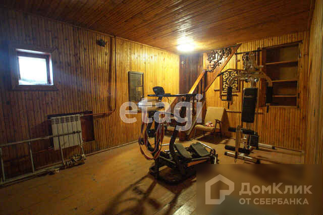 Площадь дома составляет 384,9 кв.м на которых размещены 5 комнат и цокольный этаж со спортзалом, складским помещением, станочной мастерской. Коммуникации: скважина, центральное электроснабжение, септик, отопление твердотопливный котел и эл.бойлер 16 кВт.