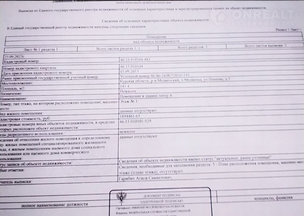 Стоимость недвижимости: