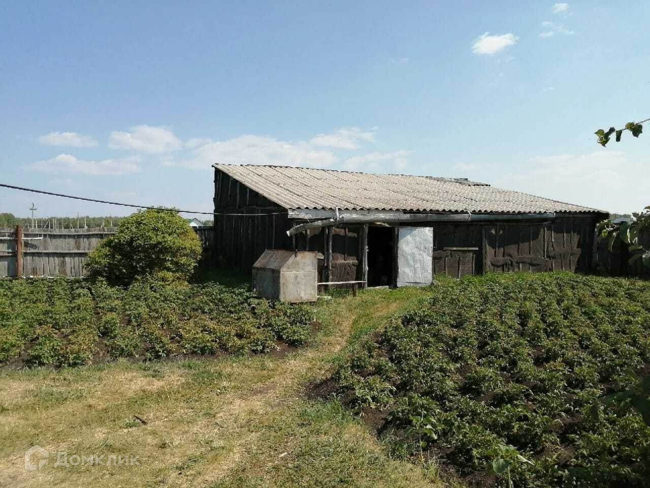 Рядом с домом большой гараж, обшитый железом.