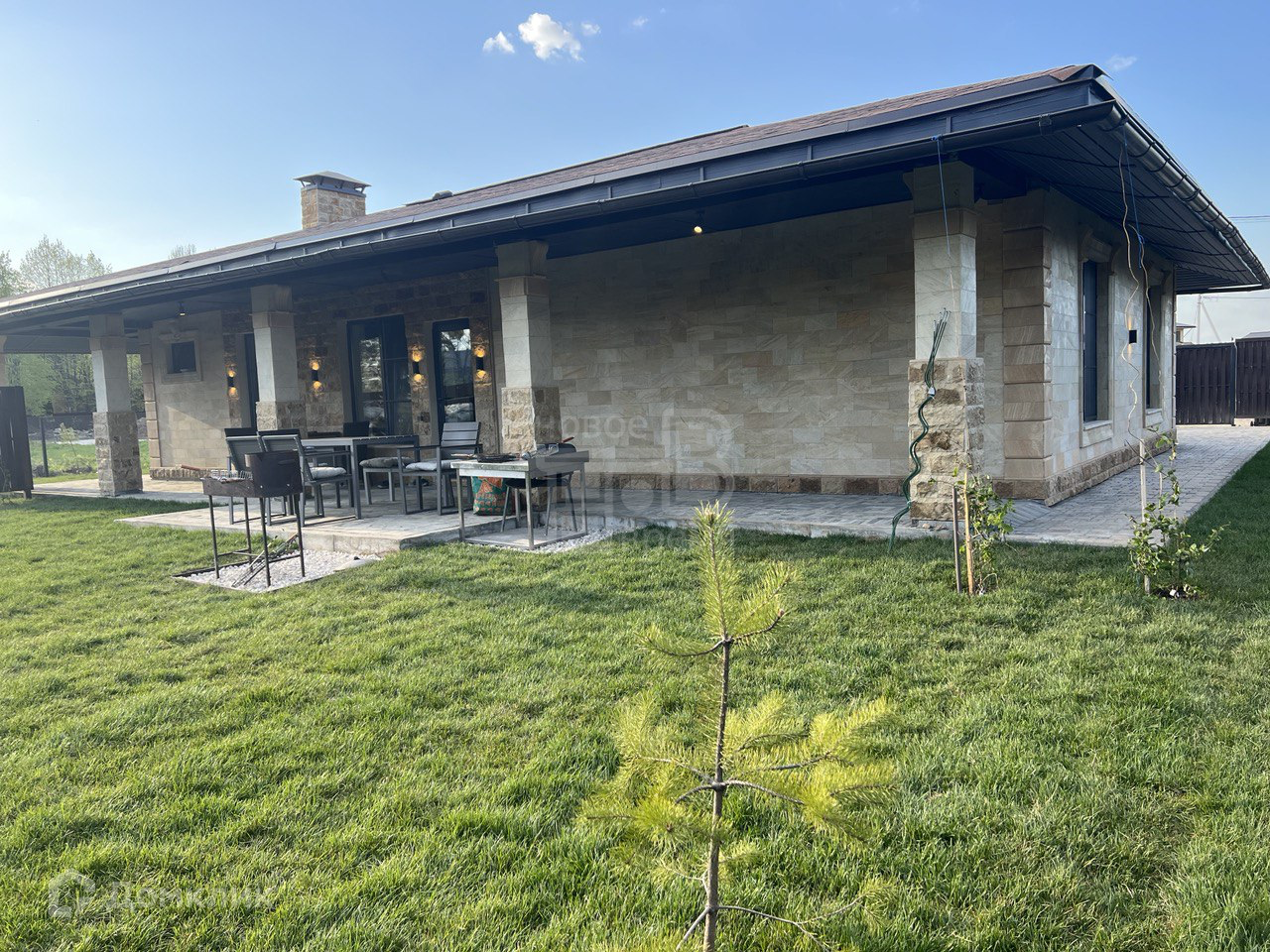 Одноэтажный с высокими потолками и большими панорамными окнами. Две террасы общей площадью 60 кв.м.