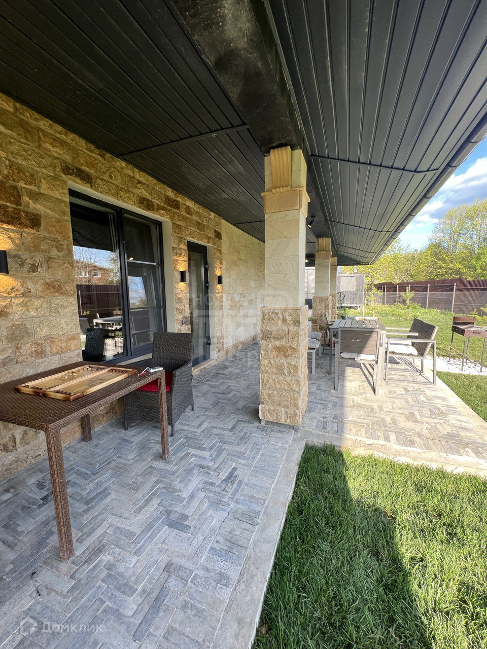 Три входа в дом. Две большие комфортные террасы. Фактически дом состоит из двух частей, которые могут использоваться как отдельно одна от другой, так и быть единым пространством путем открытия дверей между основными частями дома. (см. планировку)