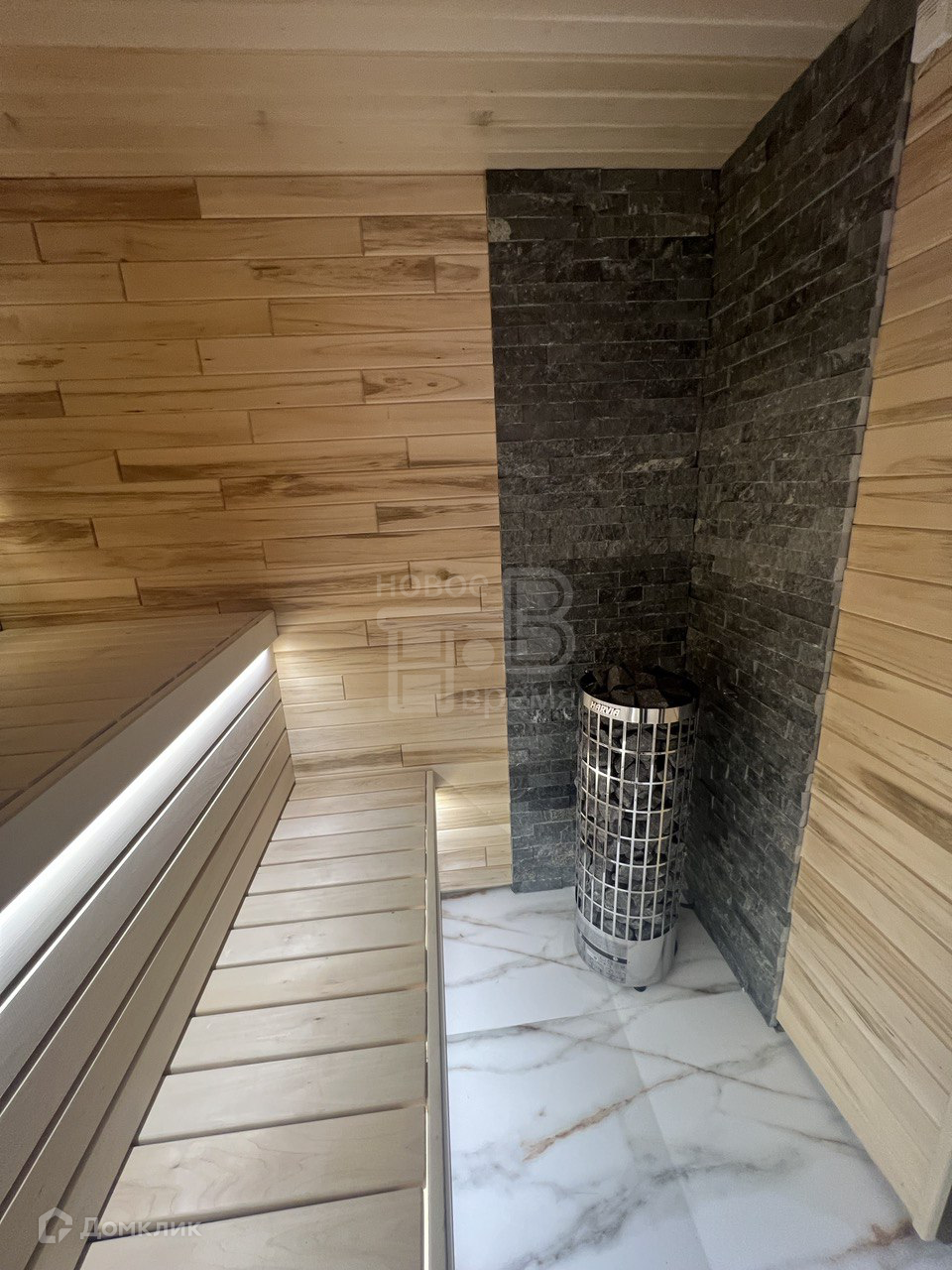 - Сауна с отделкой из можжевельника. Печь премиум класса Harvia.