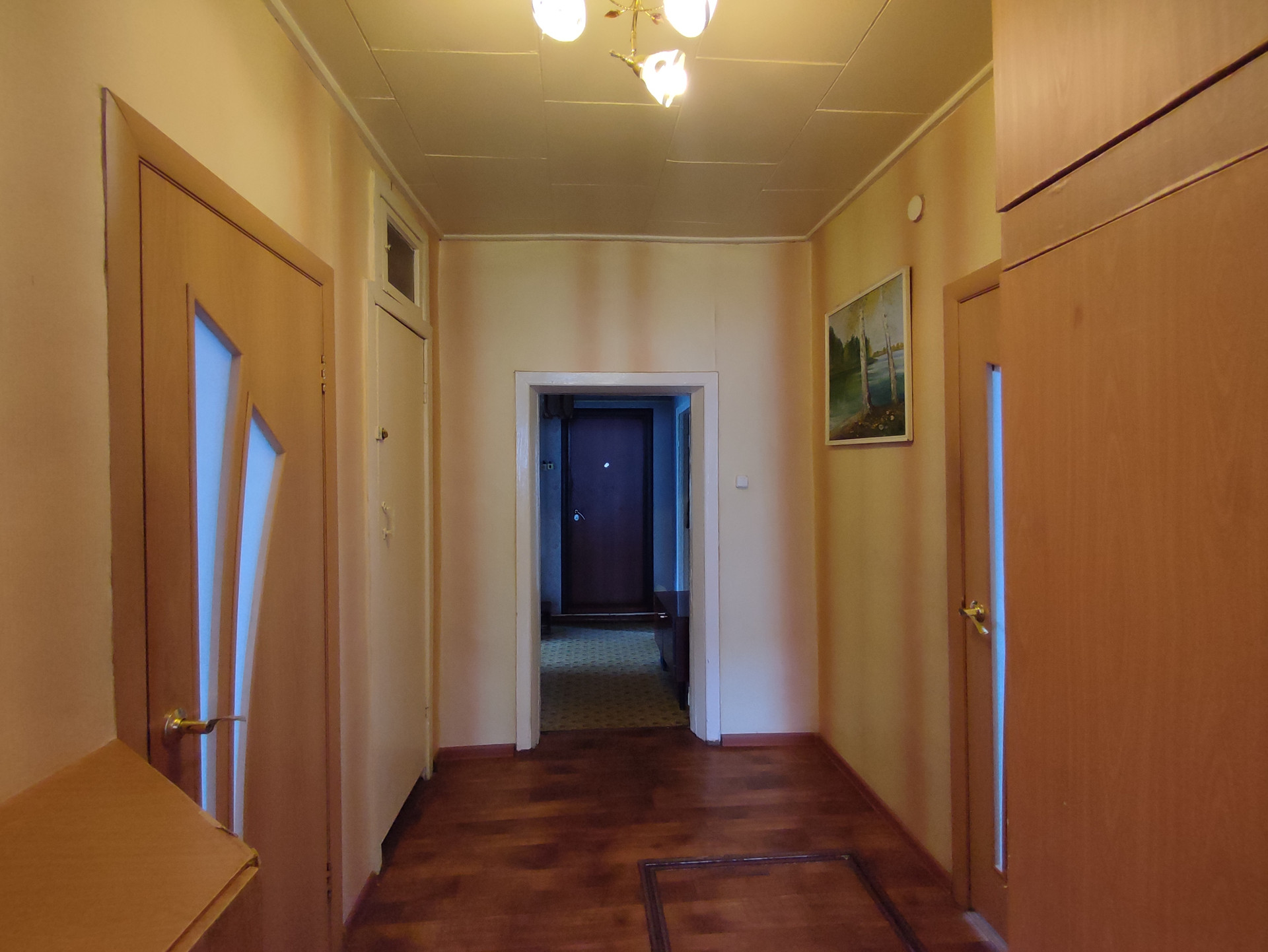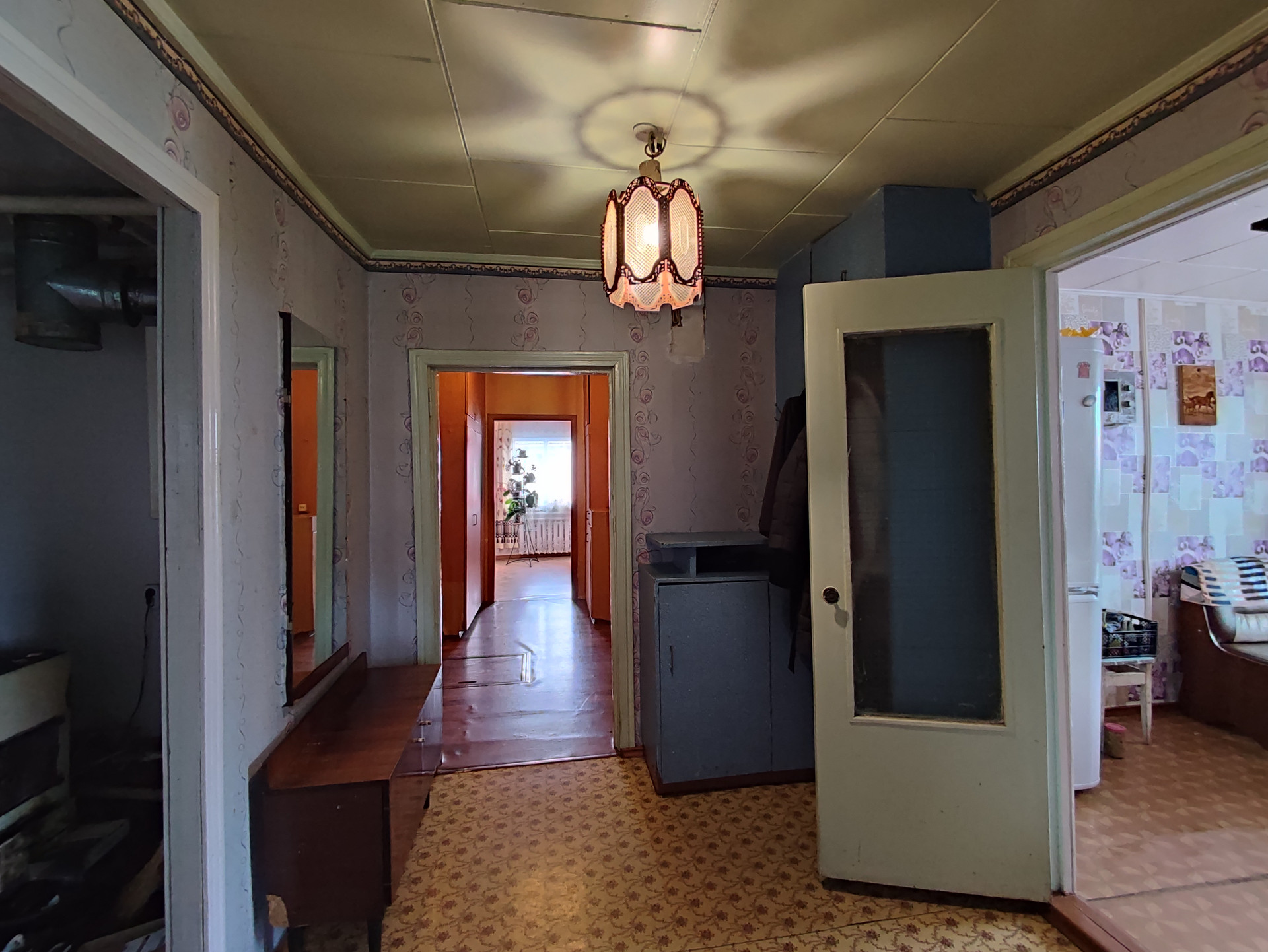 В доме выполнен косметический ремонт. На полу линолеум, стены- обои, в зале декоративная штукатурка. В ванной комнате стены и потолок - панель. Установлена душевая кабина. В коридоре и прихожей имеются встроенные шкафы. Большой, глубокий подпол с освещением.