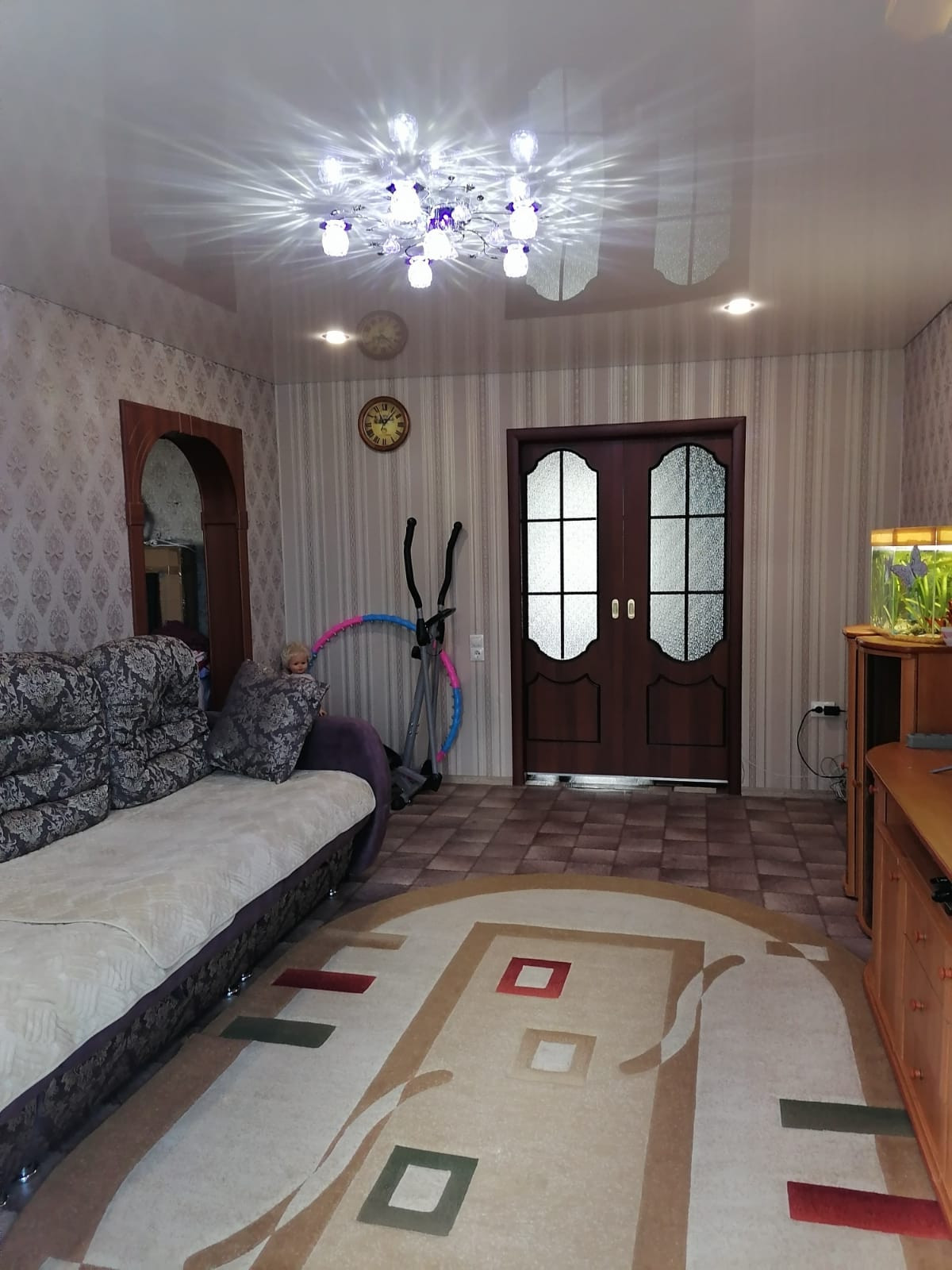 Дом расположен рядом со школой и детским садом, к дому ведет асфальтированная дорога, благоустроеный, хороший двор, самые лучшие соседи в мире живут в этом доме, много зеленых насаждений растет, есть участок под окнами для мелких посадок, ячейка в подвале для хранения инвентаря относится к квартире, дом находится близко к котельной, поэтому в квартире очень тепло в отопительный сезон, есть счетчик на тепло. У дверей подъезда кодовый замок, чистый подъезд, у подъездов лавочки установлены и урны, в квартире большая лоджия-пвх, железная входная дверь, все окна-пвх. В квартире остается встраиваемая мебель, шкафы, смотрите фото. Покупайте и живите долго и счастливо.