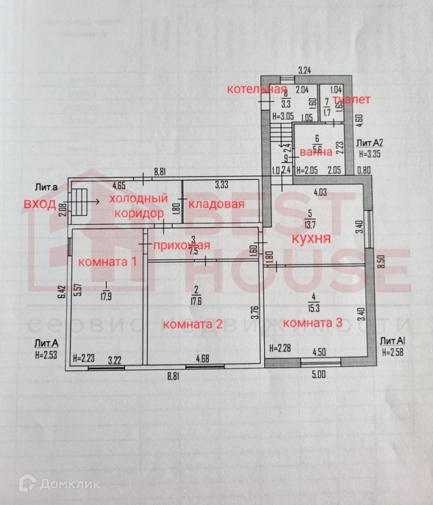 Дом состоит из 3 изолированных комнат.