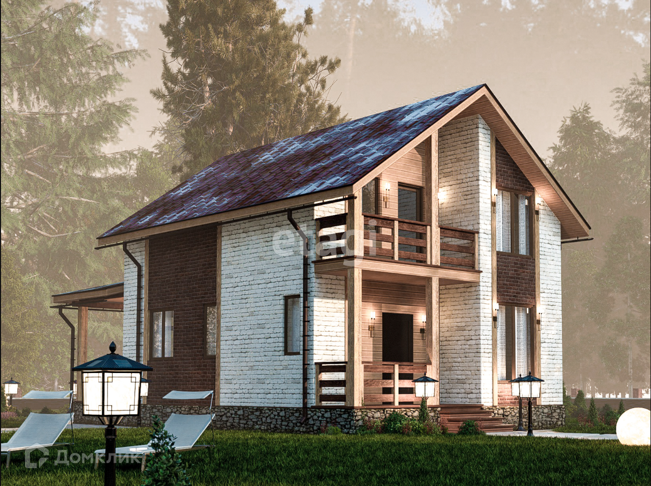 Наличие эркера позволило спроектировать балкон и крыльцо под общей кровлей дома, что придает выразительный, архитектурный облик фасаду. Планировка 1-го этажа включает в себя спальню, санузел, прихожую, электрическую котельную, просторную кухню-гостиную с выходом на крытую террасу. На втором этаже расположились 3 спальни, одна из которых имеет свой выход на балкон, а также просторный, комфортный санузел. Строительство каркасного дома Валенсия выполняется из строганой древесины камерной сушки, даже стропильная система и перекрытия выполняются именно из нее. Если вы хотите изменить планировки, то наш архитектор поможет это сделать на первой же встрече.