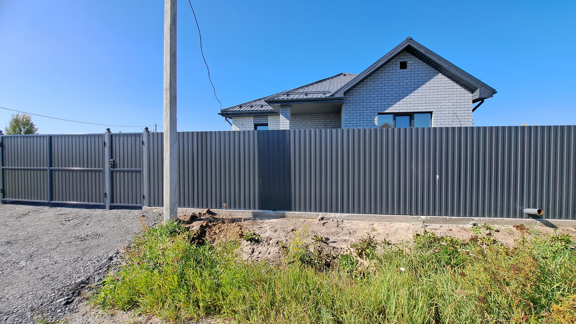 Забор ( штакетник, профнастил + откатные ворота), Благоустройство ( газон на входной части, парковочное место отсыпано щебнем , перед домом брусчатка, бордюры) Комплектация дома (дом в предчистовой отделке, стены из керамзитоблока, утеплением минвата 100 мм, облицовочный кирпич, утепленная отмостка из бетона. Внутренняя отделка, коммуникации Выполнена подготовка стен под поклейку обоев, проведена электропроводка, смонтировано отопление "теплый пол" полностью по 1 этажу + радиаторы под окнами, отделка котельной - плитка, установлено 2 котла - газовый 24 квт + электрический 9 квт, заведены и подключены все коммуникации - скважина, септик, газ