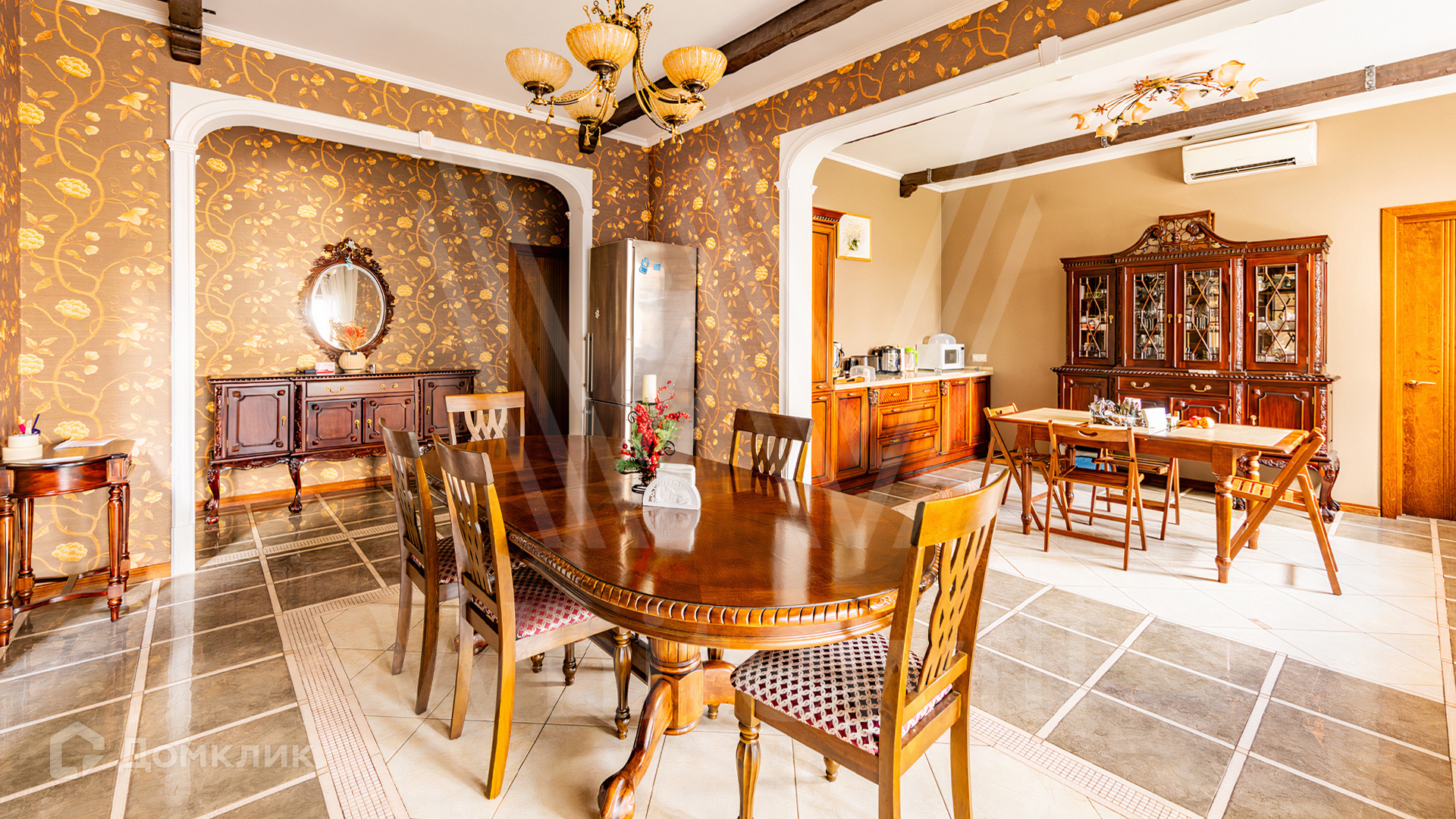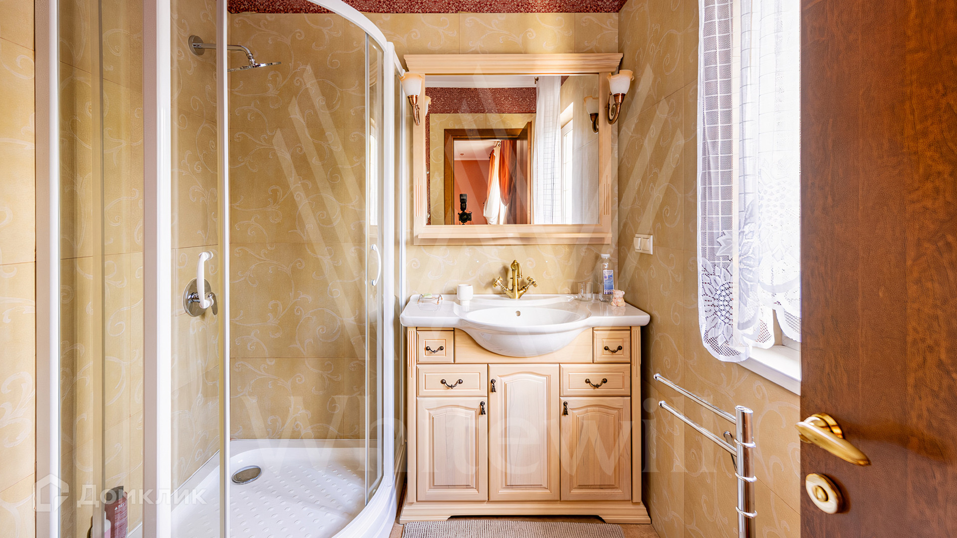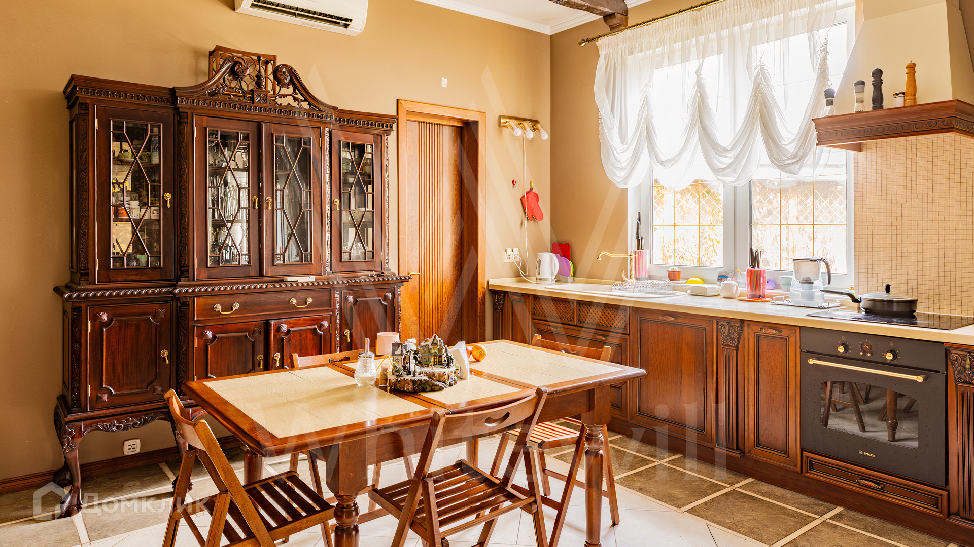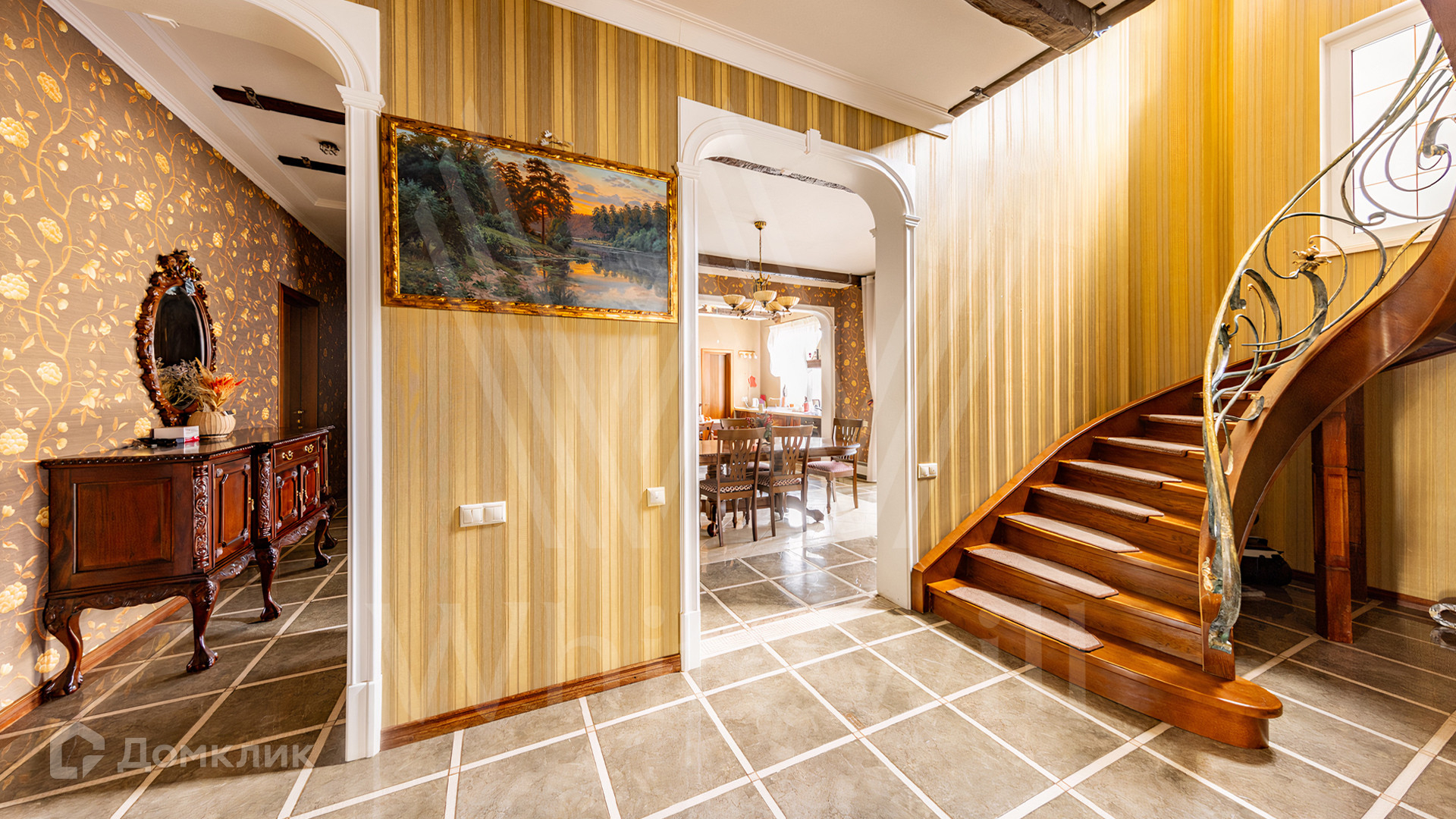 ID 11 845. Княжье Озеро. Загородный дом площадью 350 м² расположен на полевом участке 20 соток с видом на озеро. Фасад здания выполнен в европейском стиле и облицован бежевой штукатуркой. В отделке интерьера использованы теплые оттенки, создающие атмосферу уюта. В доме разместили 4 спальни, гостиную с камином, кухню-столовую, кабинет, зимний сад и домашний кинотеатр. Рядом построены гараж на 2 машины и домик для персонала. На участке выполнен ландшафтный дизайн и обустроен уличный бассейн.
