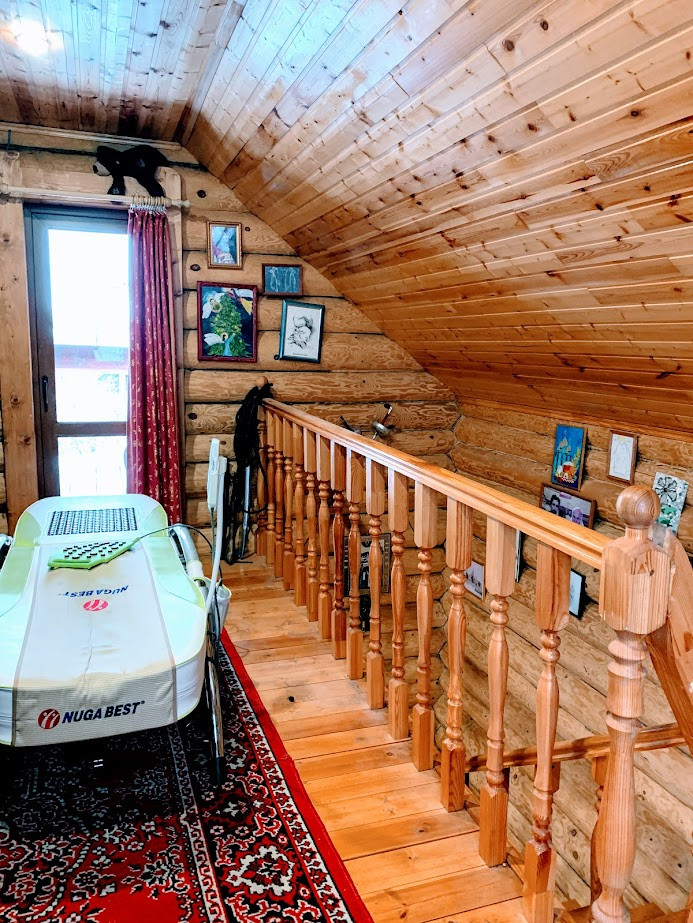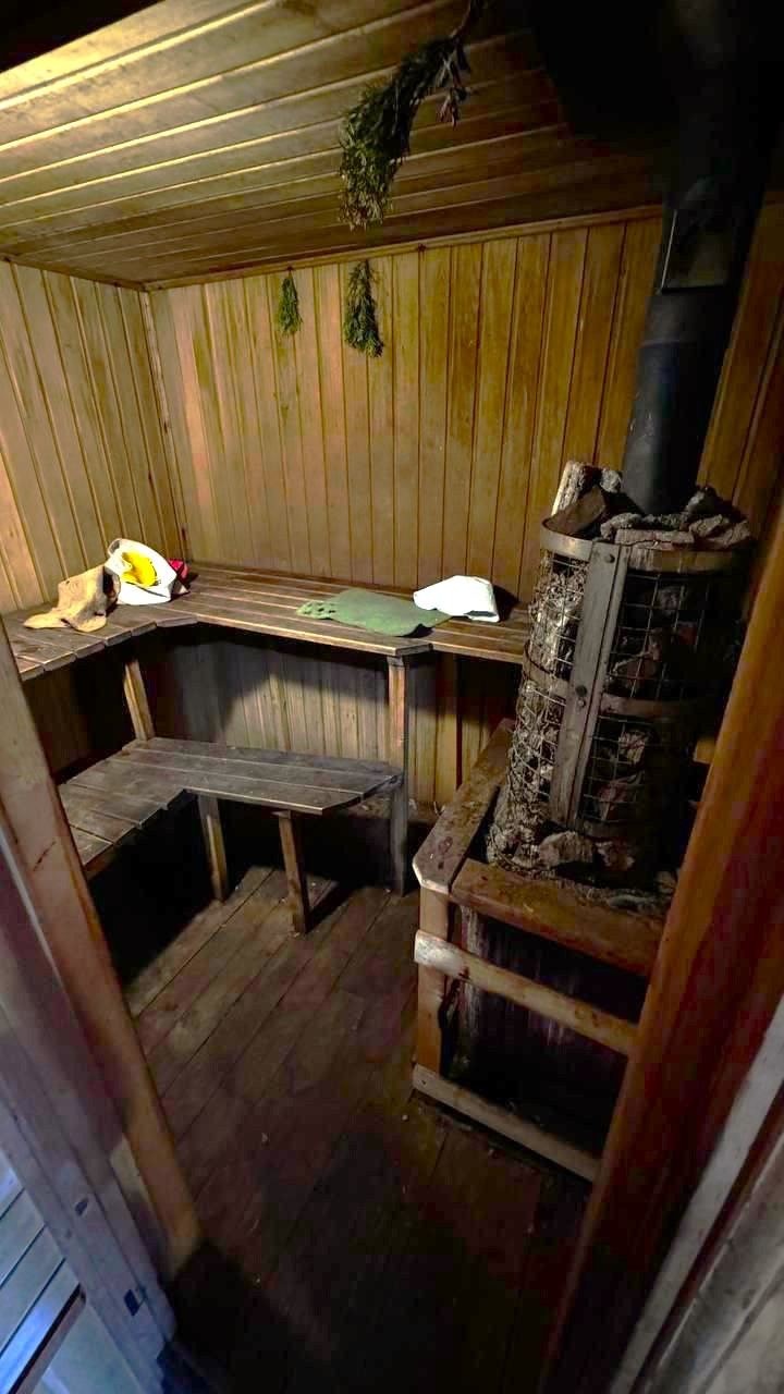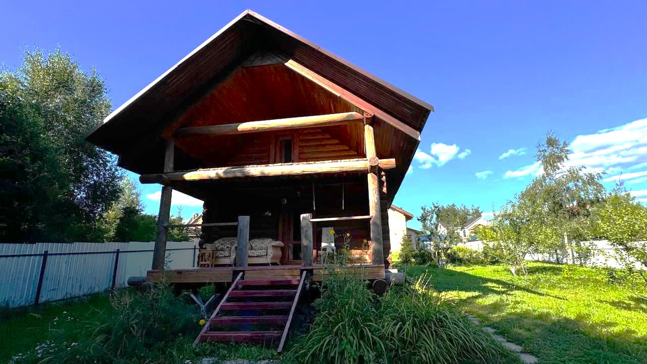 Баня с мансардой из бревен, 45 кв.м. на первом этаже сауна (топится дровами), санузел совмещен, на втором этаже жилая изолированная комната. Баню можно использовать как гостевой домик.