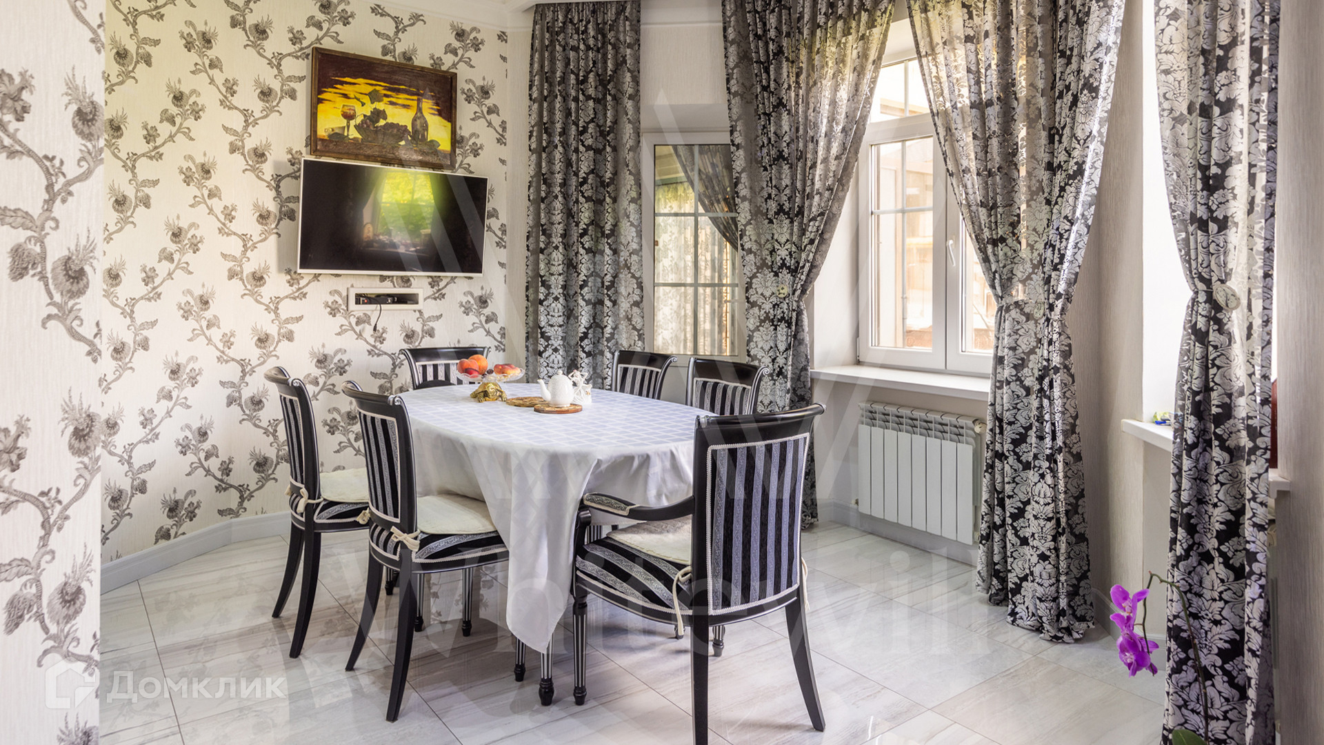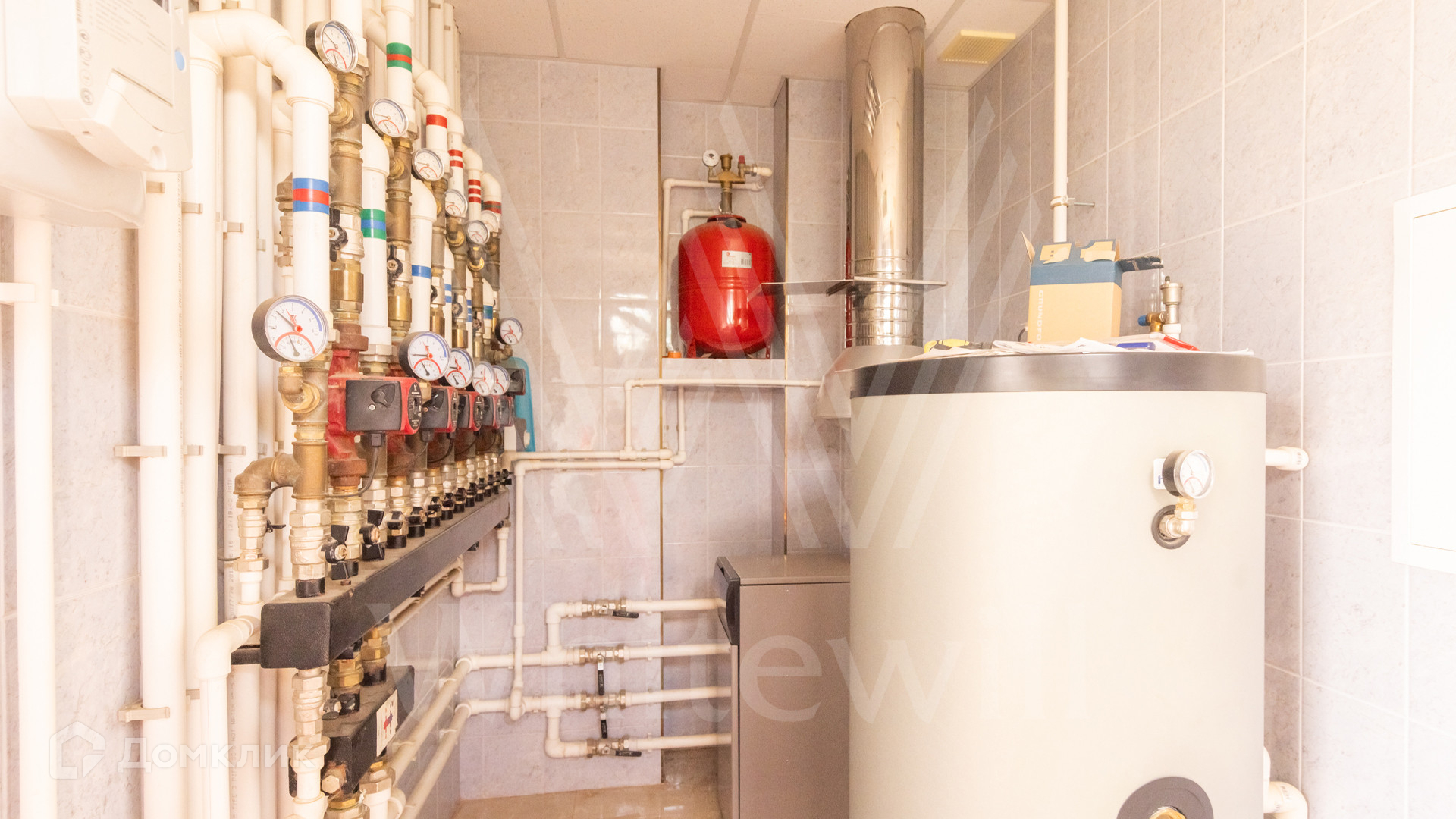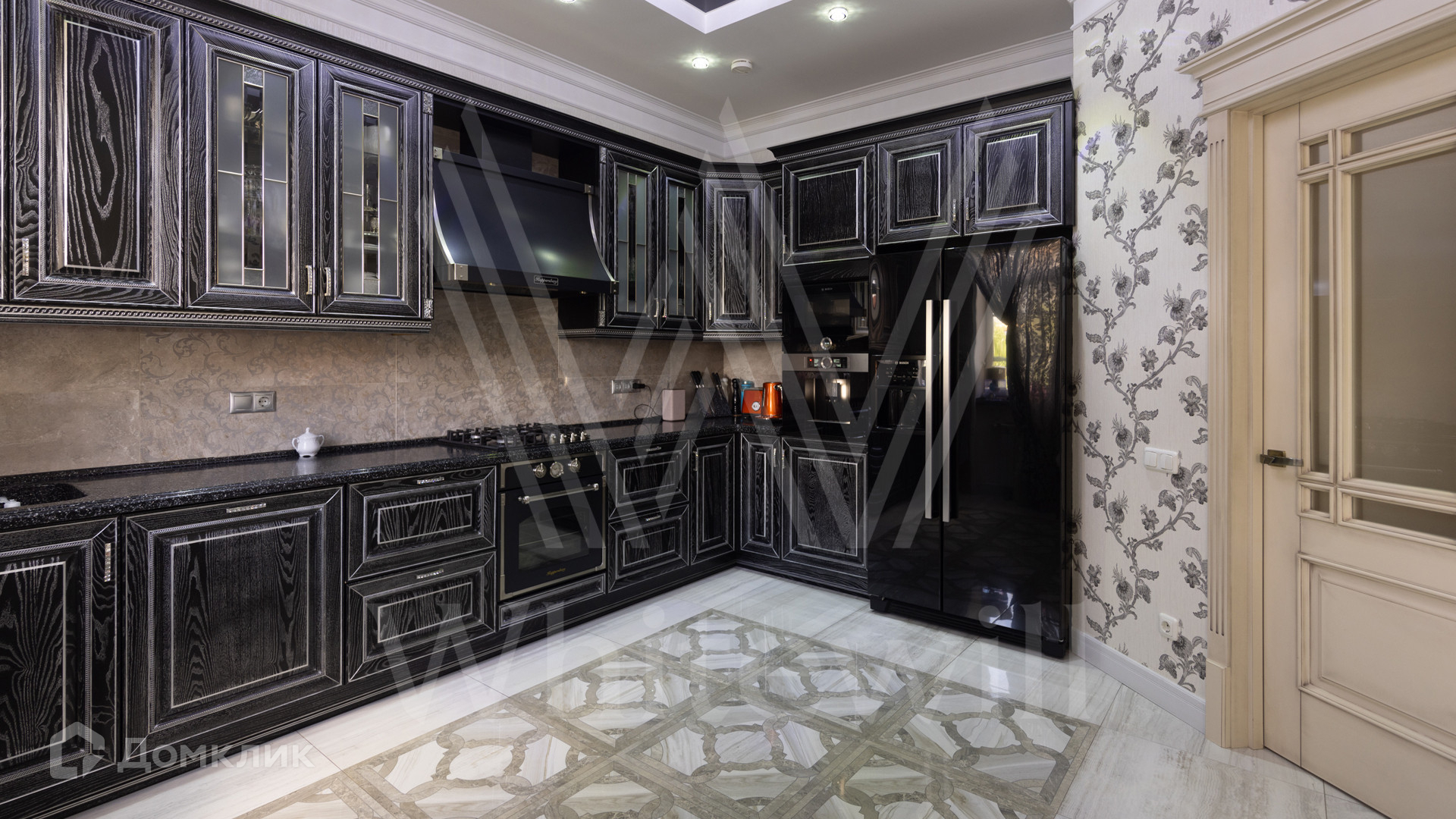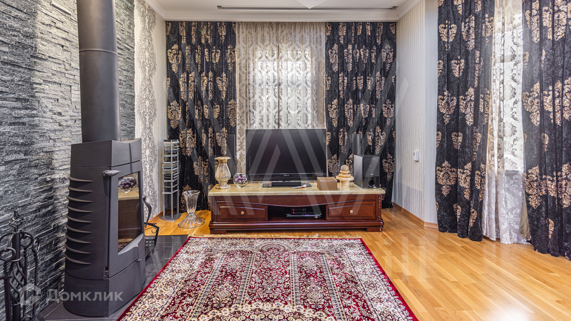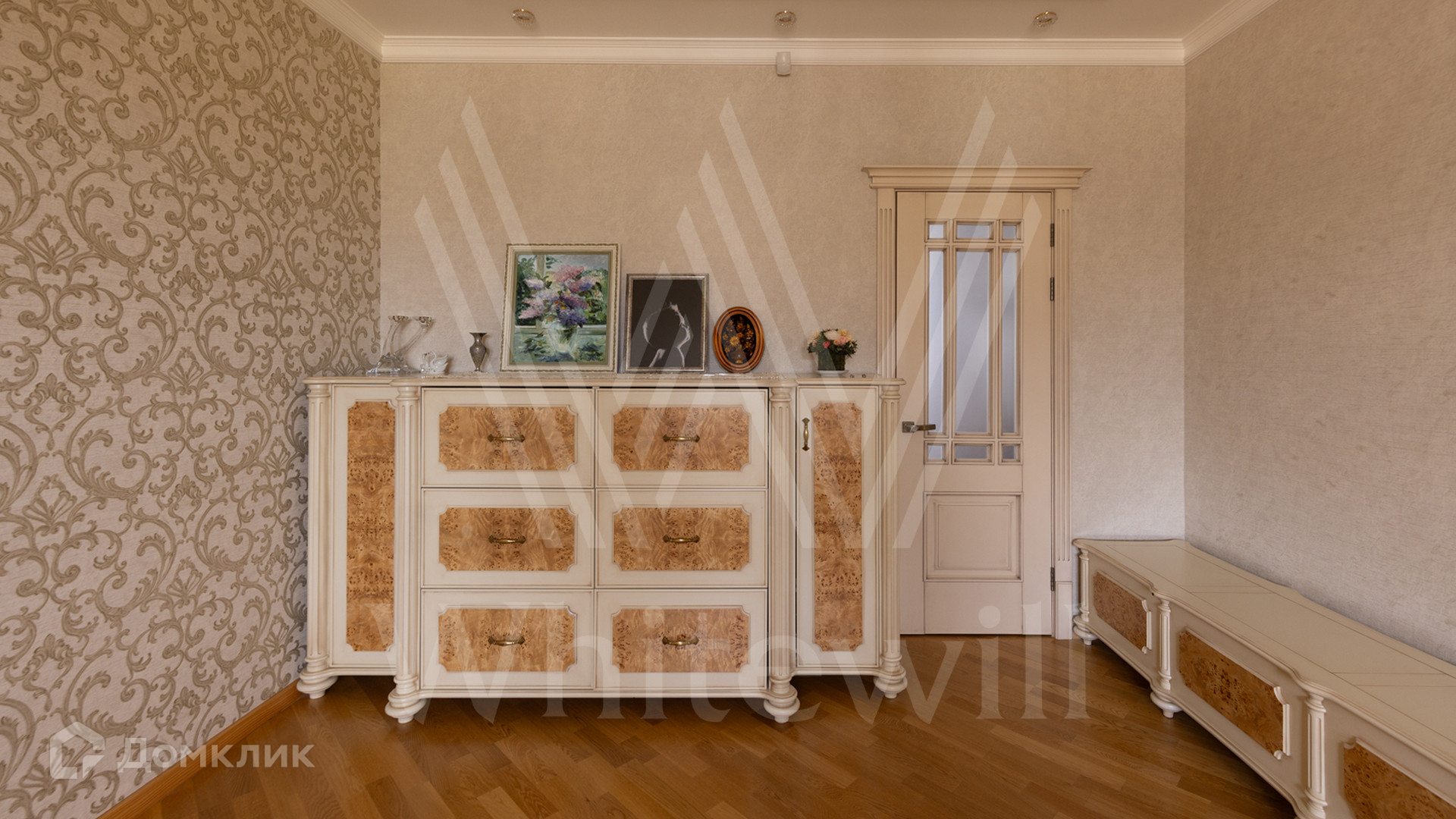 ID 12 539. Новорижский. Загородный дом площадью 368 м² построен на полевом участке 11 соток. Фасад здания облицован бежевым клинкером, декорирован колоннами и коваными элементами. В отделке интерьера в классическом стиле использованы теплые оттенки, орнаменты, ковка. Планировка резиденции включает 4 спальни, гостиную с действующим дровяным камином и домашним кинотеатром, кухню-столовую, зимний сад, комнату отдыха, сауну и бассейн. В контуре дома предусмотрен гараж на 2 машины. На участке выполнен ландшафтный дизайн и вымощена площадка перед домом.