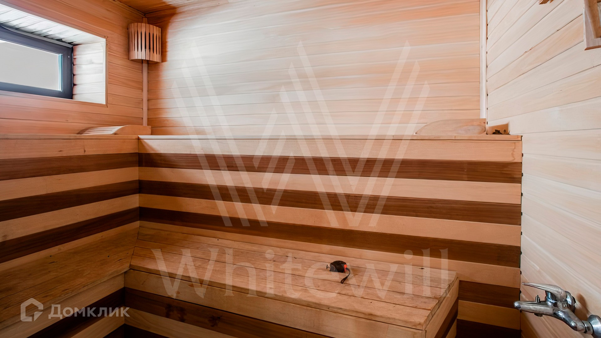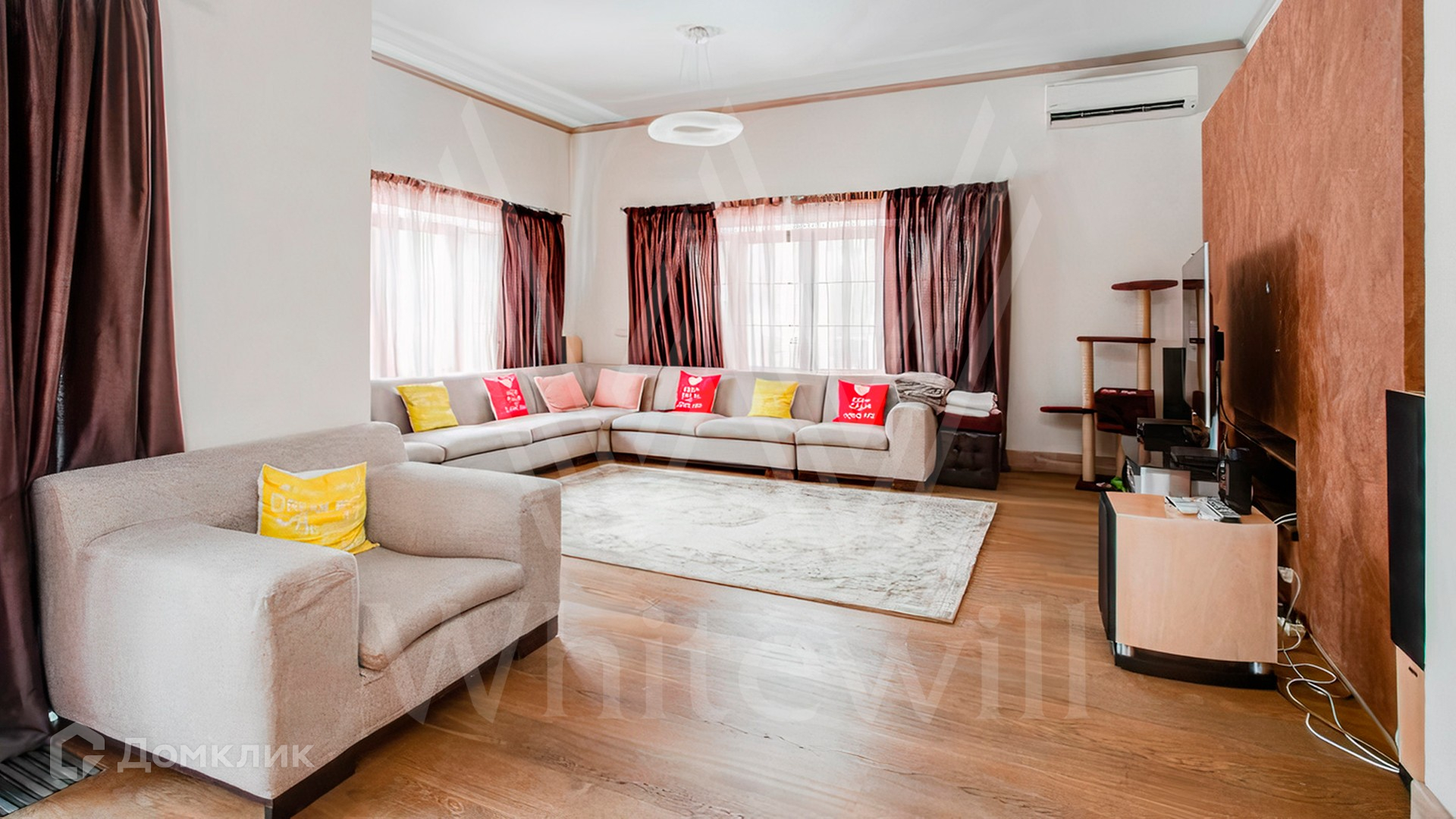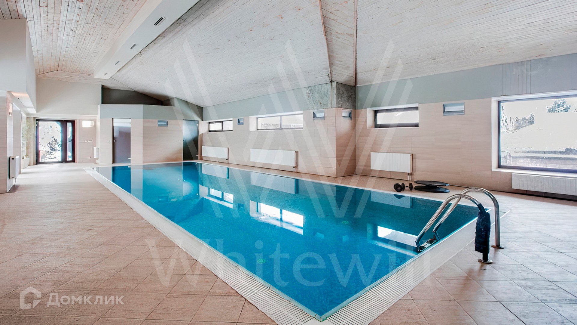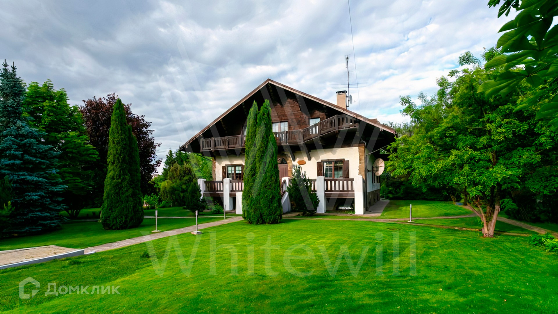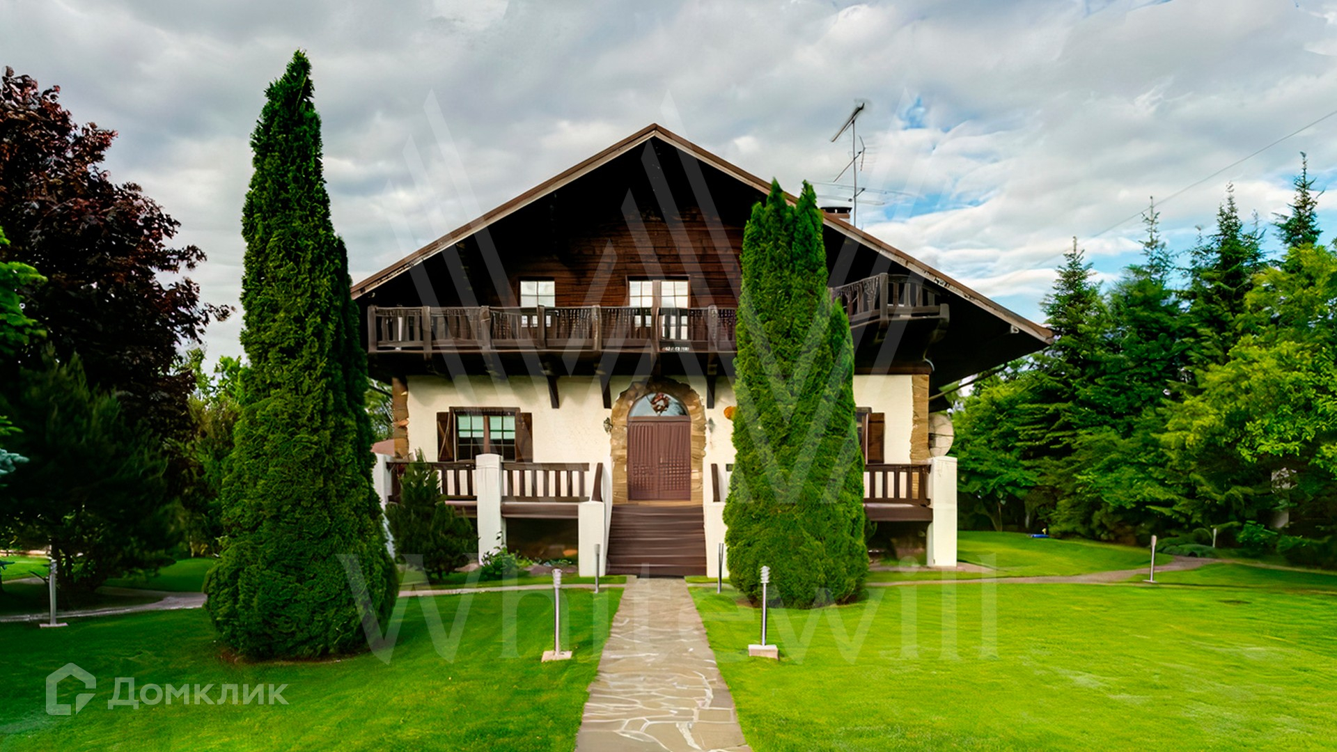 ID 10 683. Ивановское. Загородный дом площадью 500 м² построен на просторном полевом участке 32 сотки. Фасад выполнен из дерева и облицован бежевой штукатуркой, окна украшены ставнями. Интерьер оформлен в теплых светлых тонах. В коттедже спланировали 4 спальни, гостиную с камином, кухню, столовую с выходом в сад и кинозал. На территории разместили SPA-комплекс с баней и бассейном и гараж на 2 машины с квартирой для персонала. На участке выполнены дренаж и ландшафтный дизайн, оборудовано уличное освещение и автоматический полив.