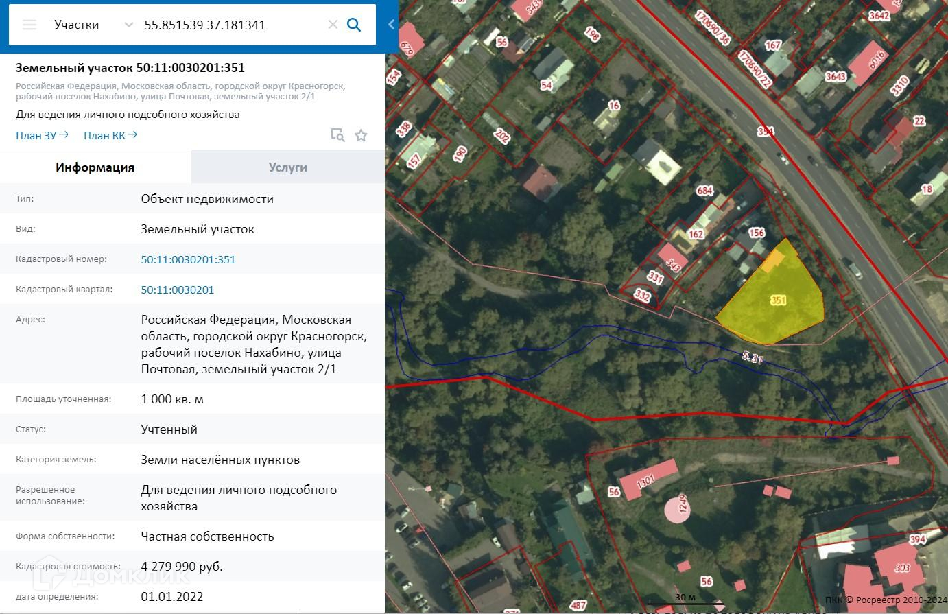 Участок под ИЖС, 10 сот. на продажу в рабочем посёлке Нахабино, Почтовая улица, 2
