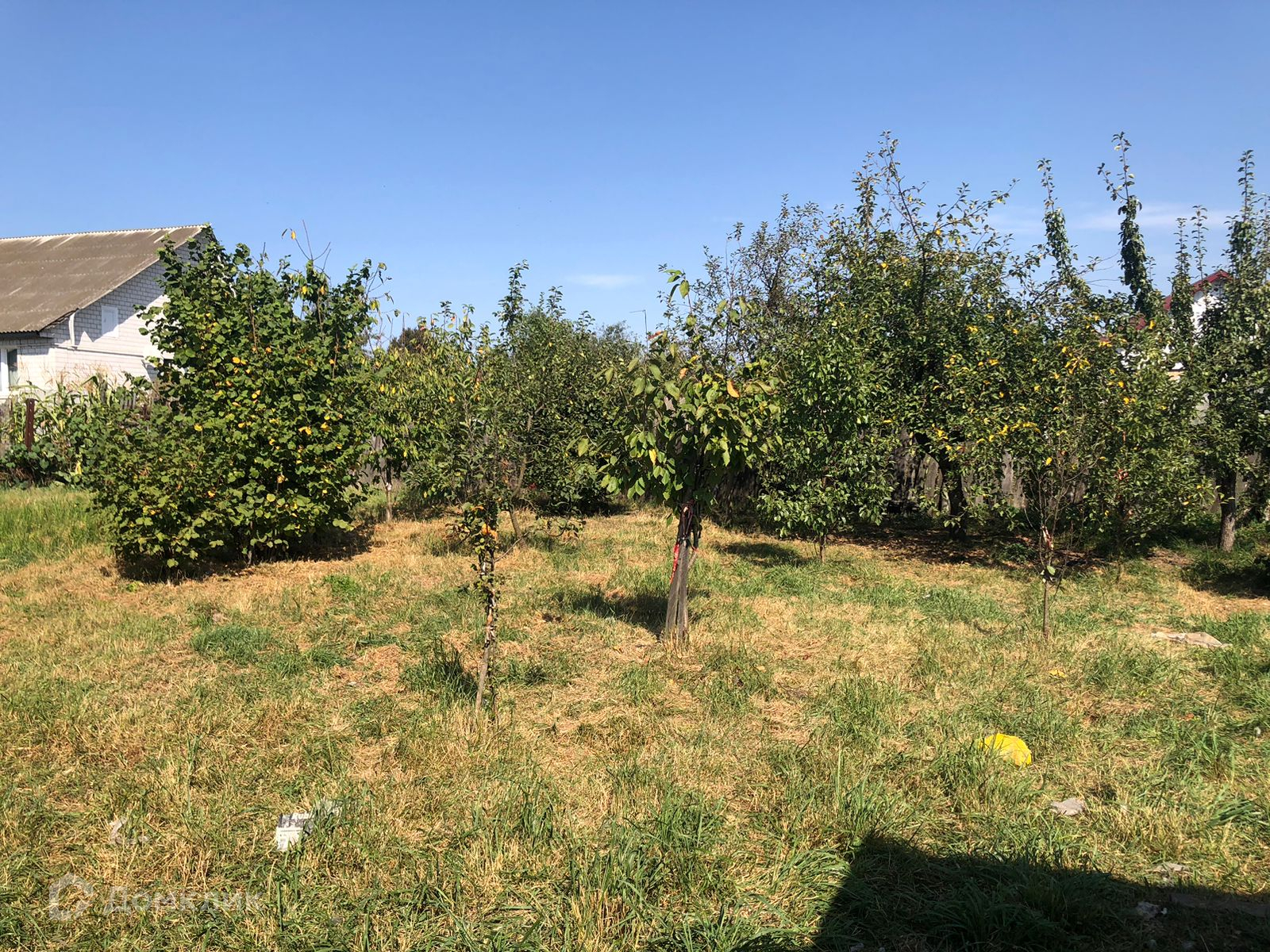 прямоугольной формы с плодово-ягодными насаждениями. Огород первый год не обрабатывается.