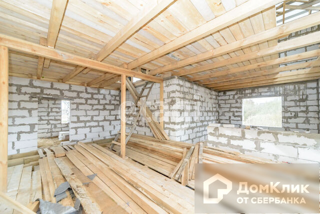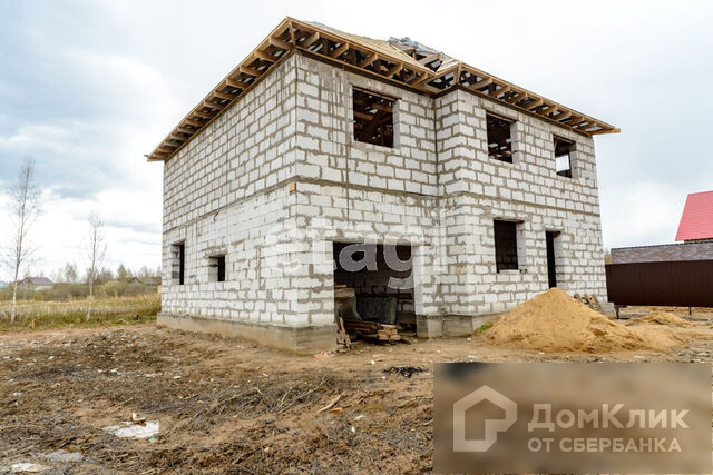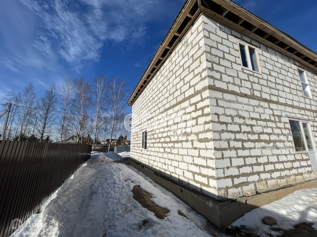 Двухэтажный дом с гаражом. Ленточный фундамент, стены выполнены из газосиликатного блока, материал крыши -металлочерепица, окна пластик- с видом на водоем и березовую рощу, внутреннее исполнение - предчистовая отделка, стены обшиты гипсокартоном.