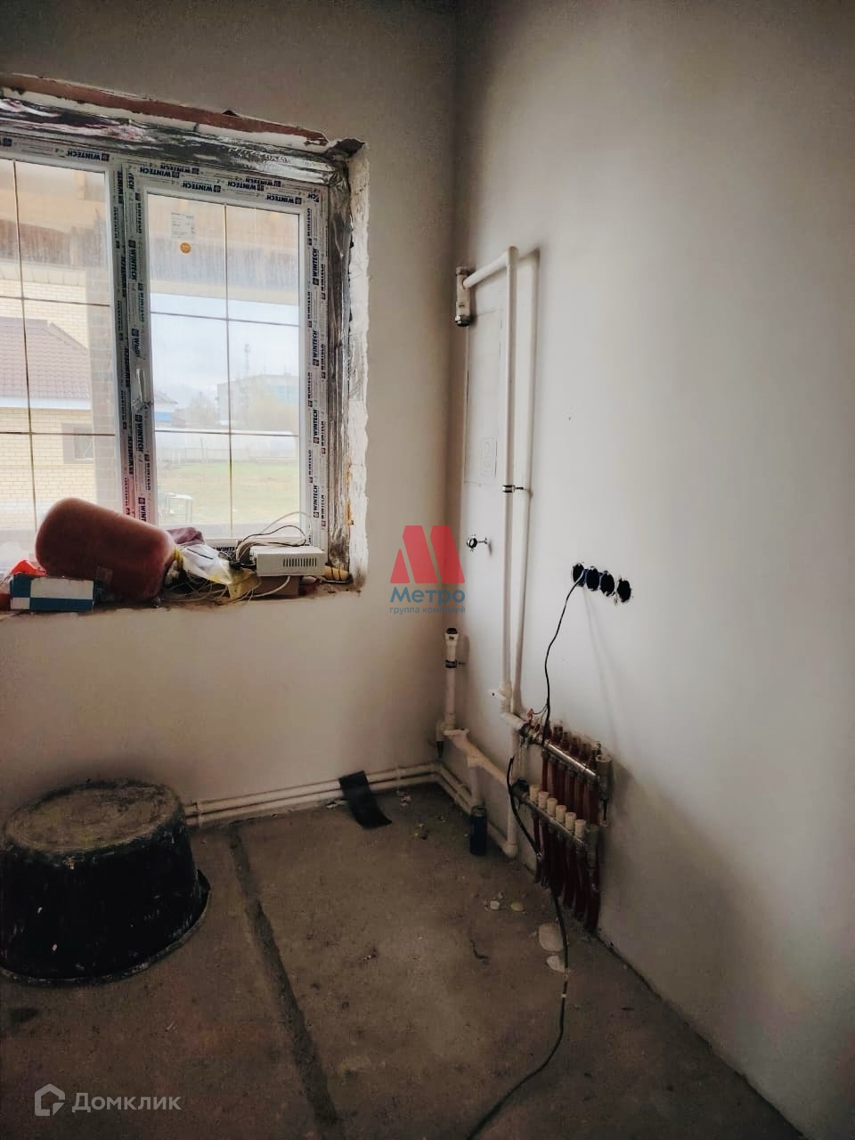Внутри дом отделан под чистовую - отштукатурены стены, сделана разводка электричества, на первом этаже - теплые полы.