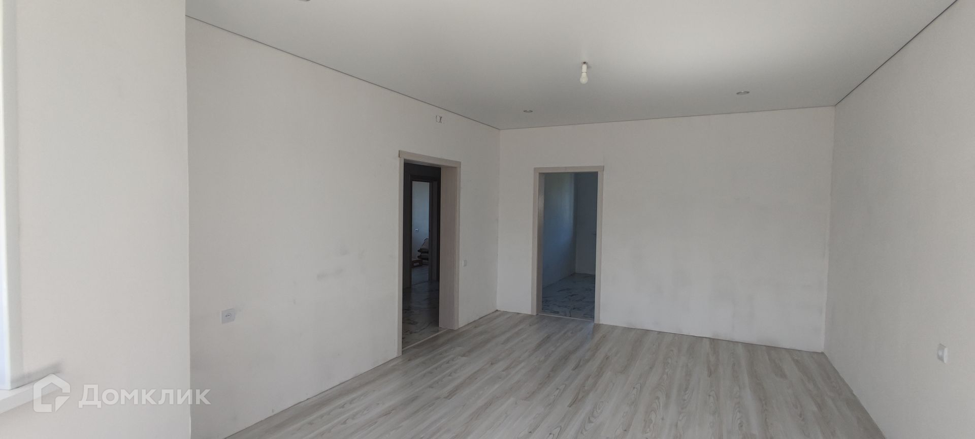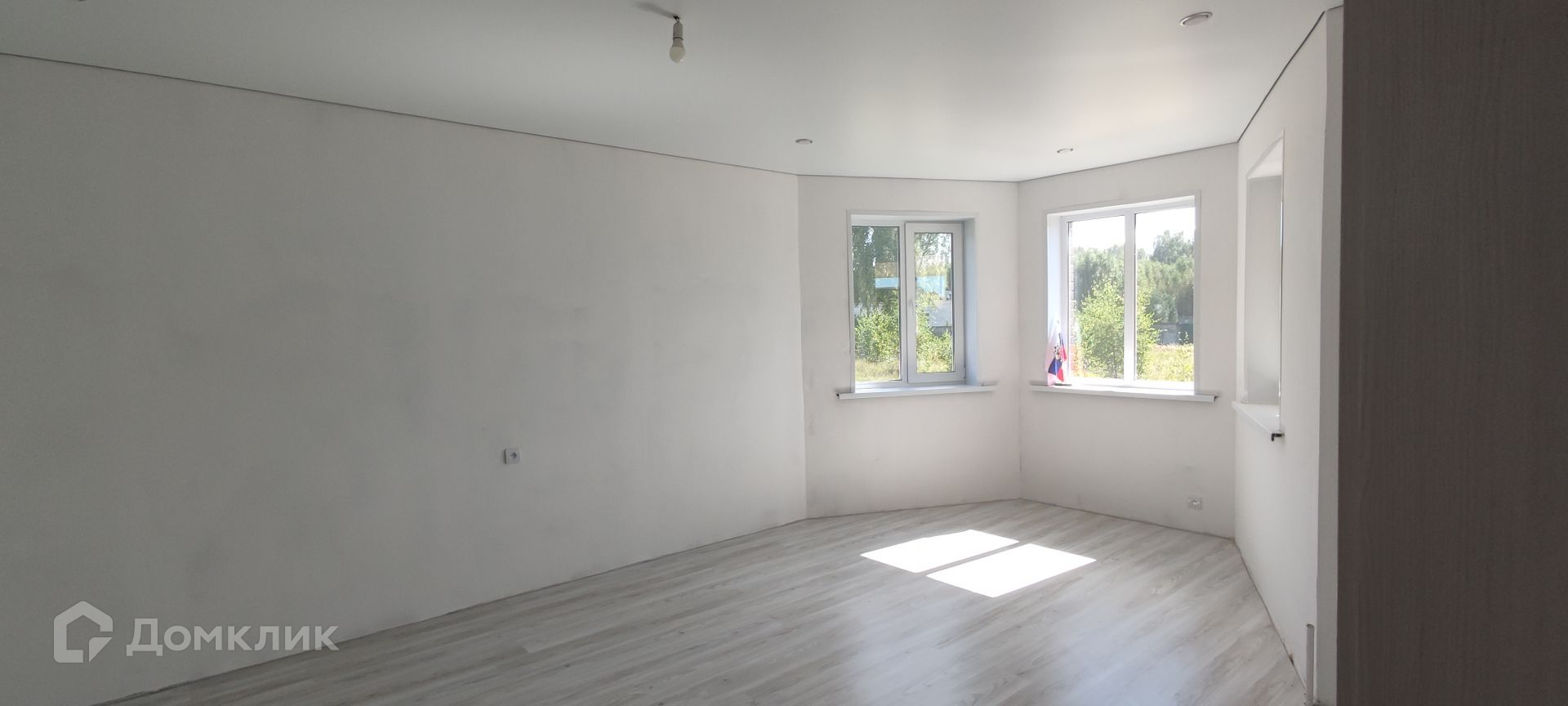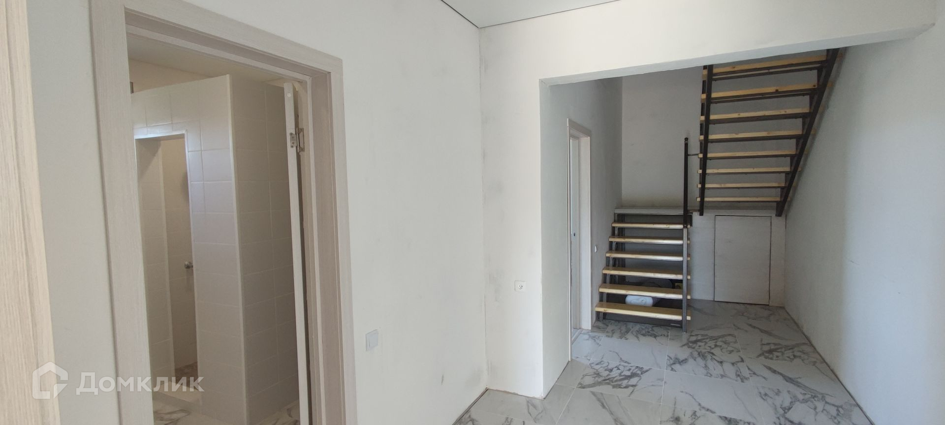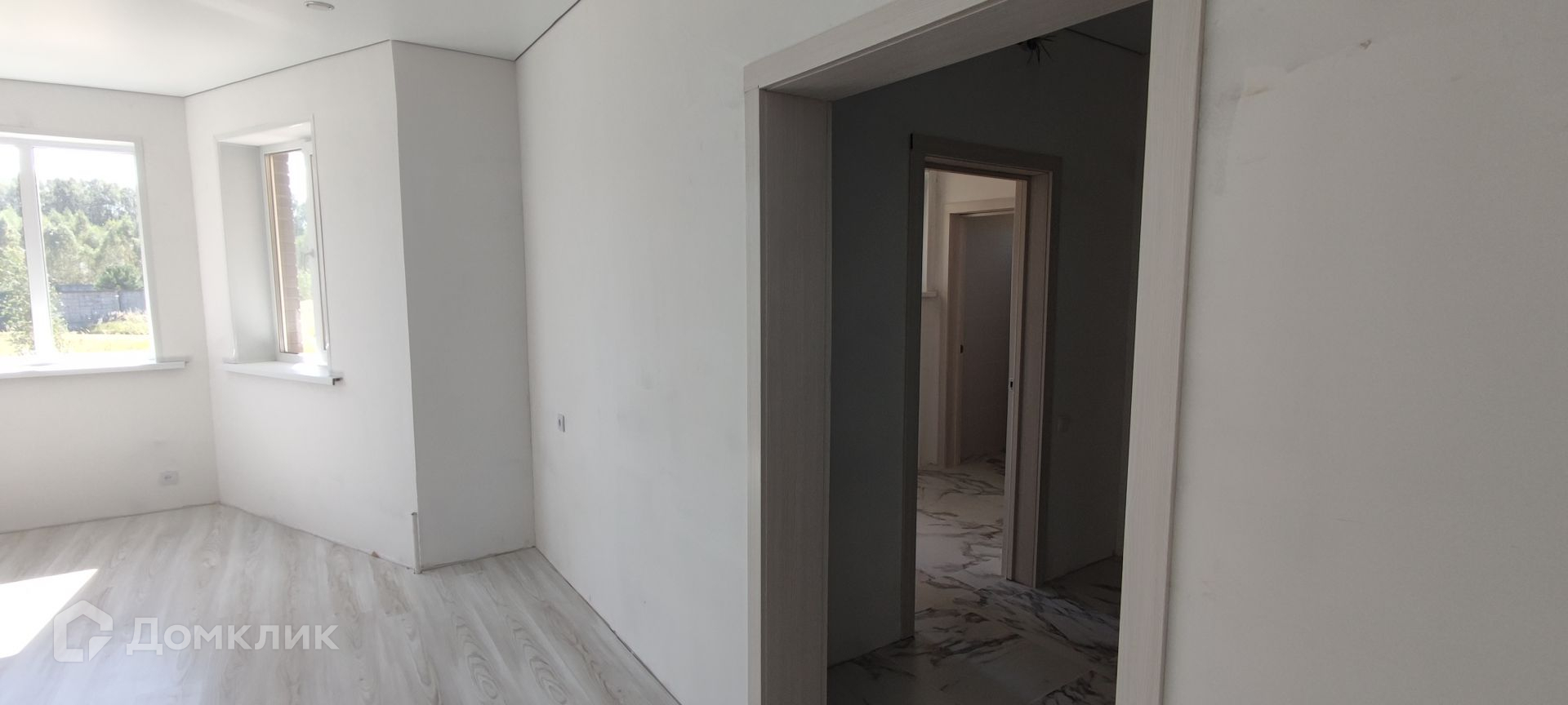 На 1 этаже пол выложен кафельной плиткой. На 2 этаже ламинат. Стены подготовлены под поклейку обоями или покраску. Потолки везде натяжные.