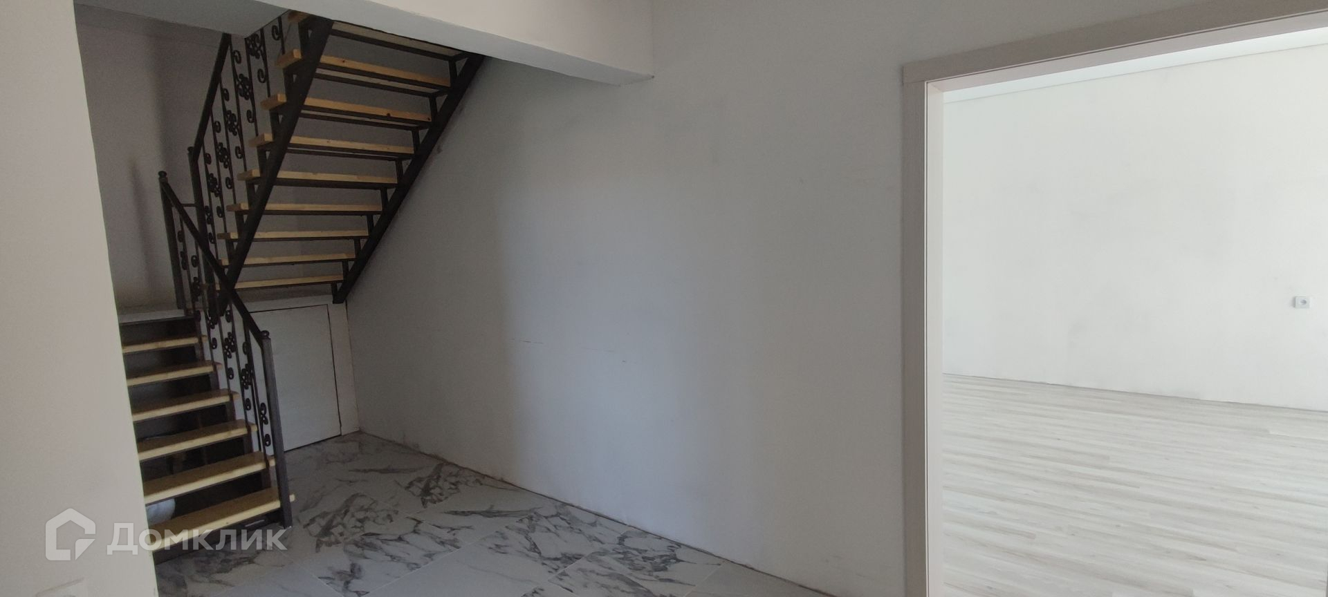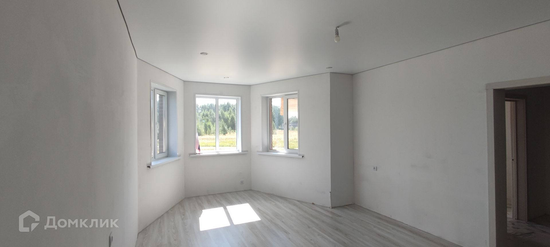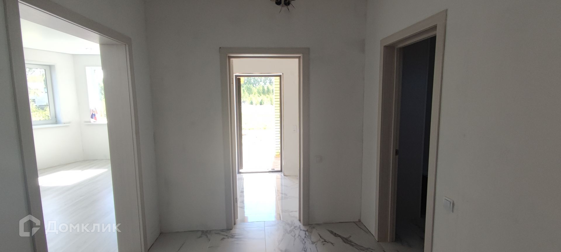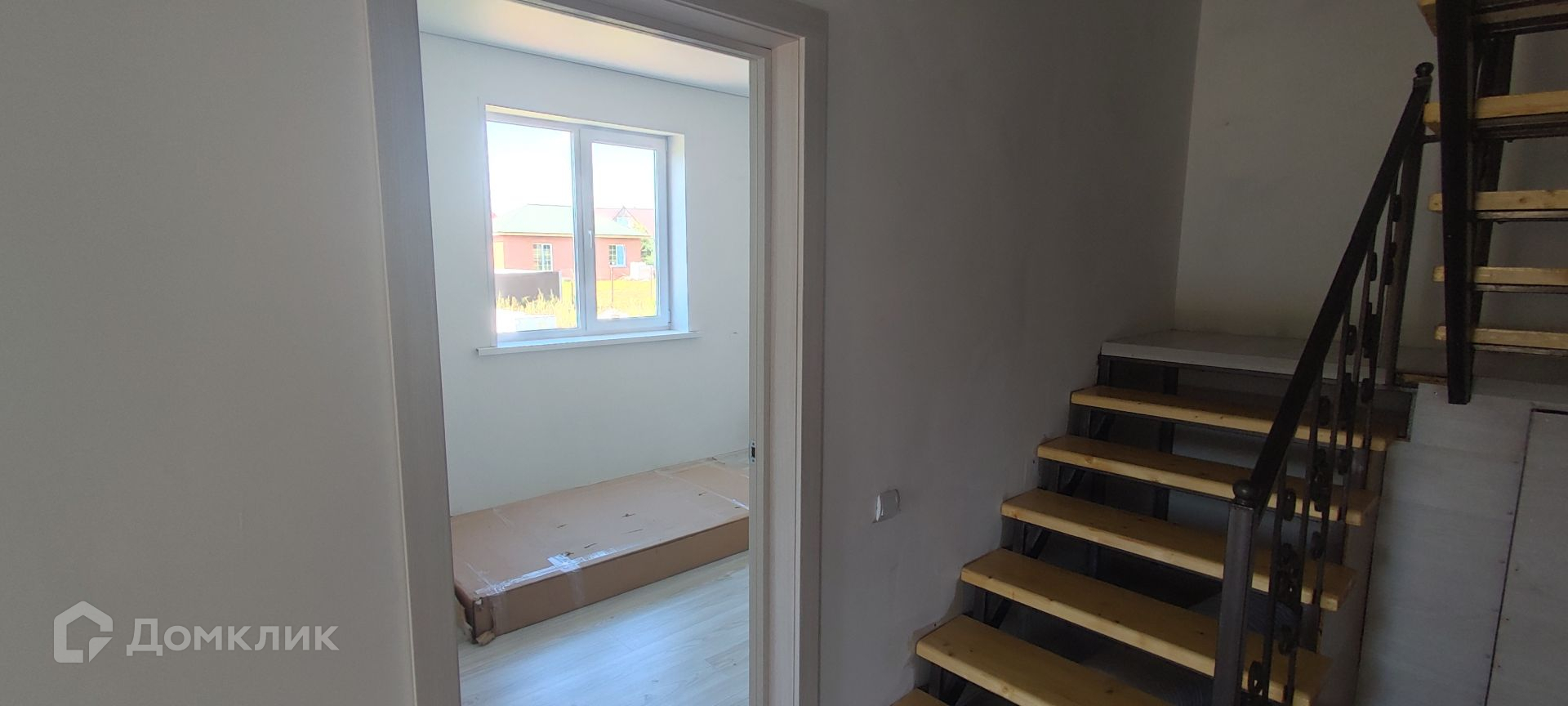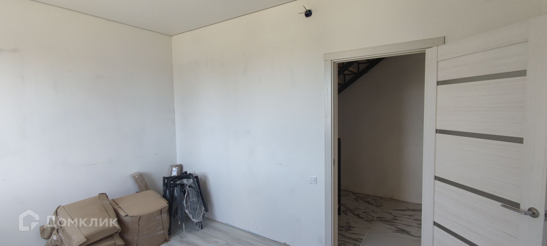 На 1 этаже пол выложен кафельной плиткой. На 2 этаже ламинат. Стены подготовлены под поклейку обоями или покраску. Потолки везде натяжные.
